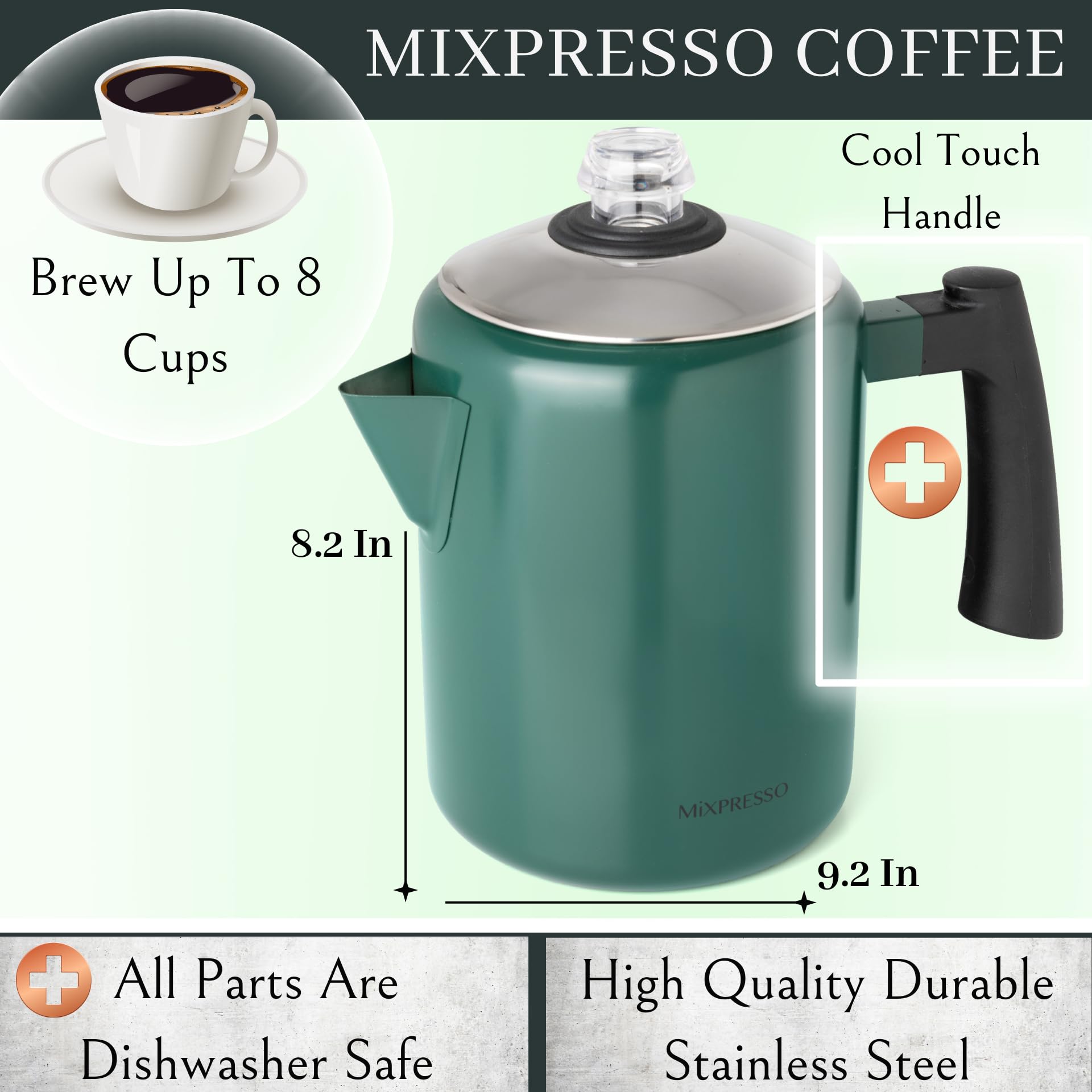 - Customer Support & Gift-Ready: Mixpresso coffee percolators comes with a 1-year warranty and dedicated customer service for your peace of mind. Whether for birthdays, holidays, housewarmings, or coffee lovers in your life — this classic stainless steel coffee pot makes a thoughtful and practical gift they’ll use every day.
