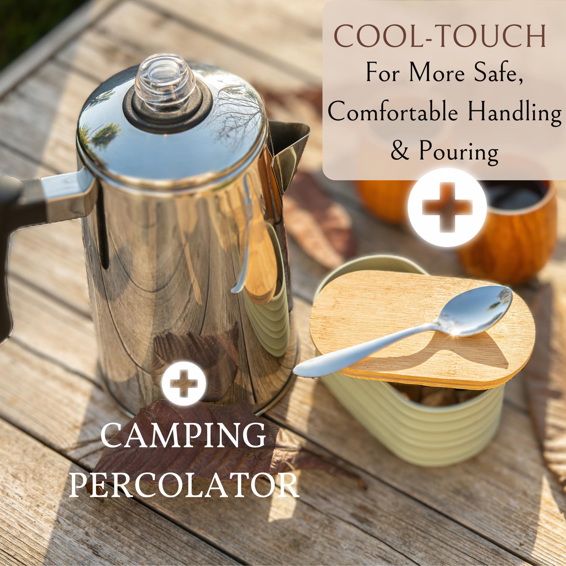 - Camp Coffee Maker: Whether you're waking up in the woods or enjoying a nature getaway, this 52 oz camping percolator is your go-to solution for rich, flavorful coffee outdoors. Brew fresh espresso coffee directly over a gas stove or camping burner — perfect for family trips, RV adventures, or campfire mornings. Compact, durable, and easy to pack.