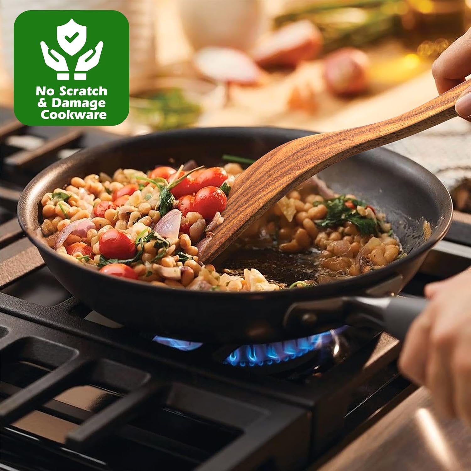 - First-class Craftsmanship & Quality: Each wooden utensils is crafted from premium solid teak wood, our kitchen utensils feature hand-polished finish ensures a smooth, burr-free surface that stays beautiful for years.non-scratch edges to protect delicate cookware surfaces, with ergonomic handles for maximum comfort. The heat-resistant construction (up to 400°F/200°C) and extended designs safeguard your pots and pans, while the weight-balanced structure effortlessly handles thick batters and risotto