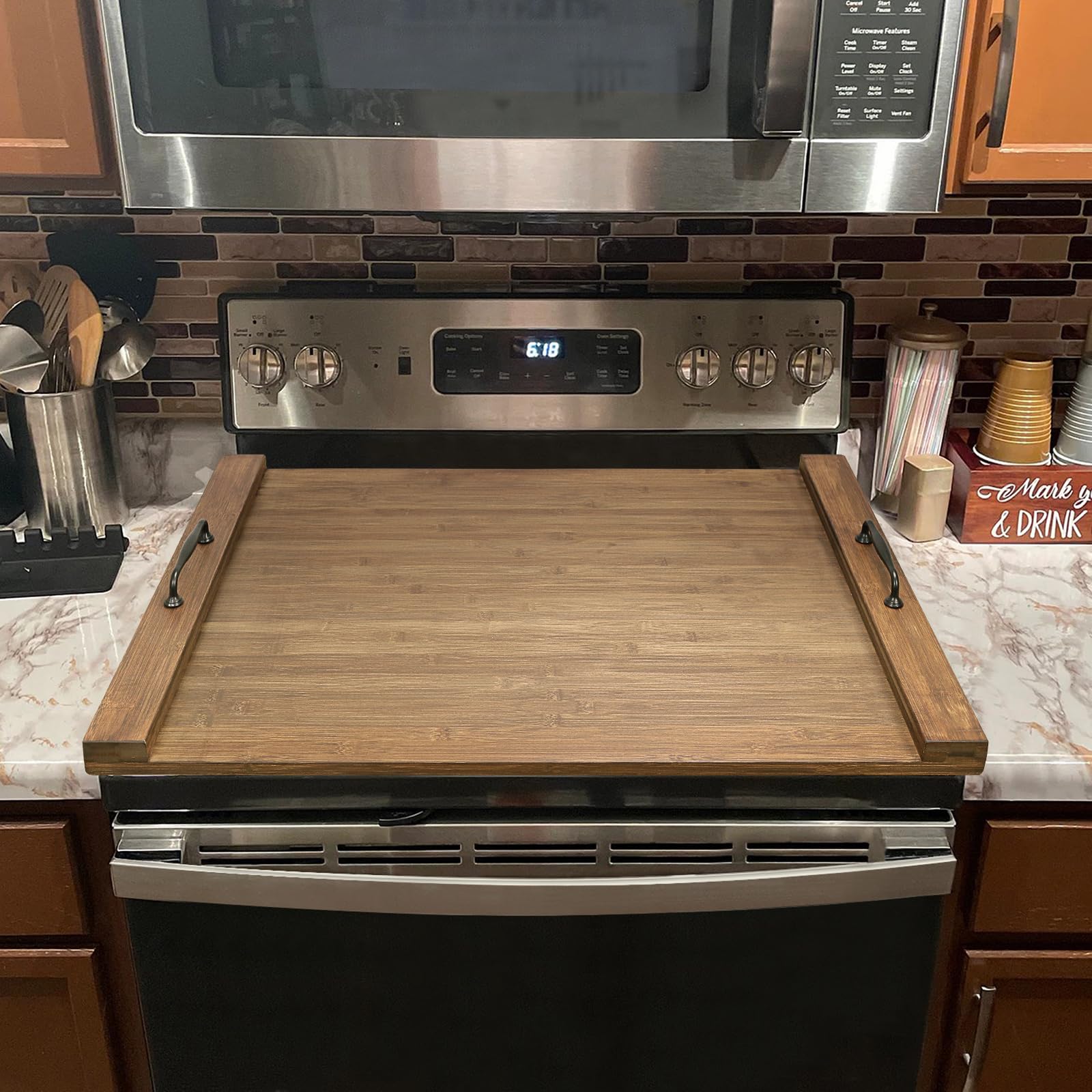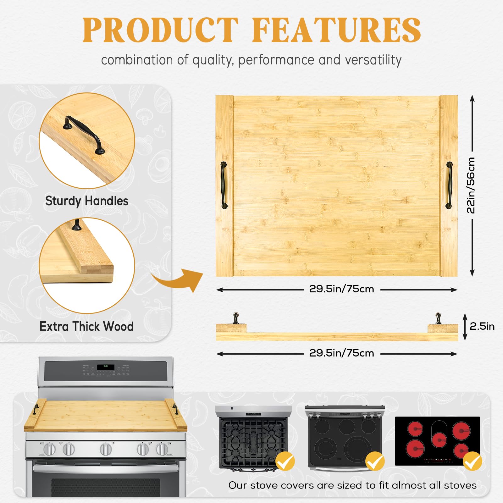 - ELEGANT WOOD: The stovetop cover board is expertly crafted from acacia wood of the highest quality. our stovetop cover is 29.5 inches wide x 22 inches deep and fit almost all stoves