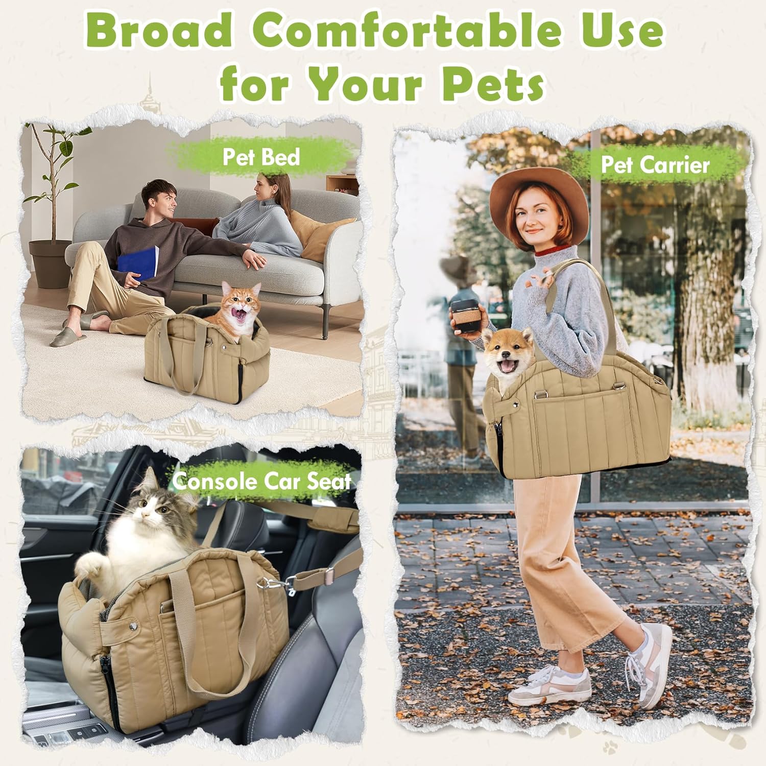 - Multi-Use Pet Carrier - The bag can not only be used on car stably as a pet booster cat seat, but also be used as a pet tote bag, carry by hand or shoulder or just put is under floor indoors or outdoors as a pet bed. The portable pet bag carrier is ideal for car central use or daily use, traveling use.