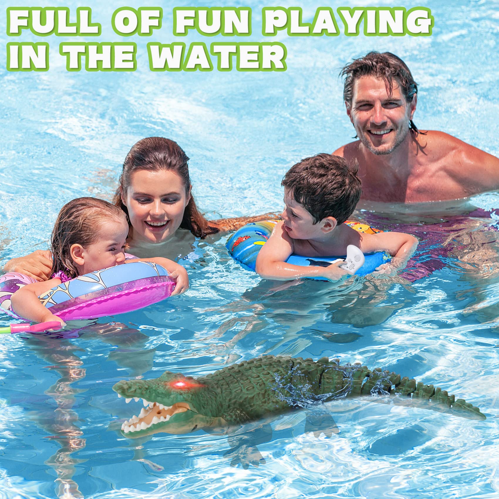 Outamateur RC Crocodile Boat,2.4GHz Alligator with Glowing Eyes,RC High Simulation Crocodile RC Boat Lake & Pool Toy,USB Rechargeable Waterproof Floating Alligator Toy for Kids Aged 6+