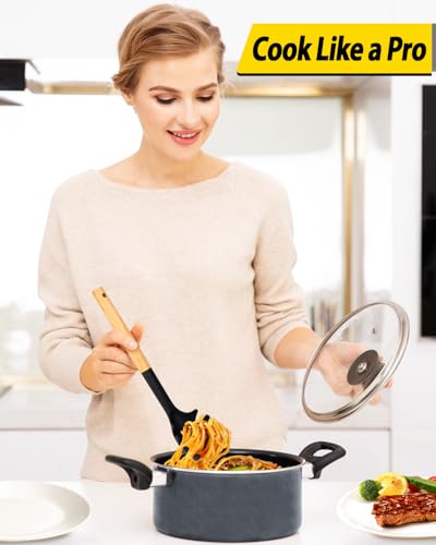 - Thoughtful Design : Wooden handle keeps you away from the trouble of kitchen utensils rusting or breaking; This anti-scald wood handle is not easy to conduct heat and is more comfortable to hold than traditional utensils