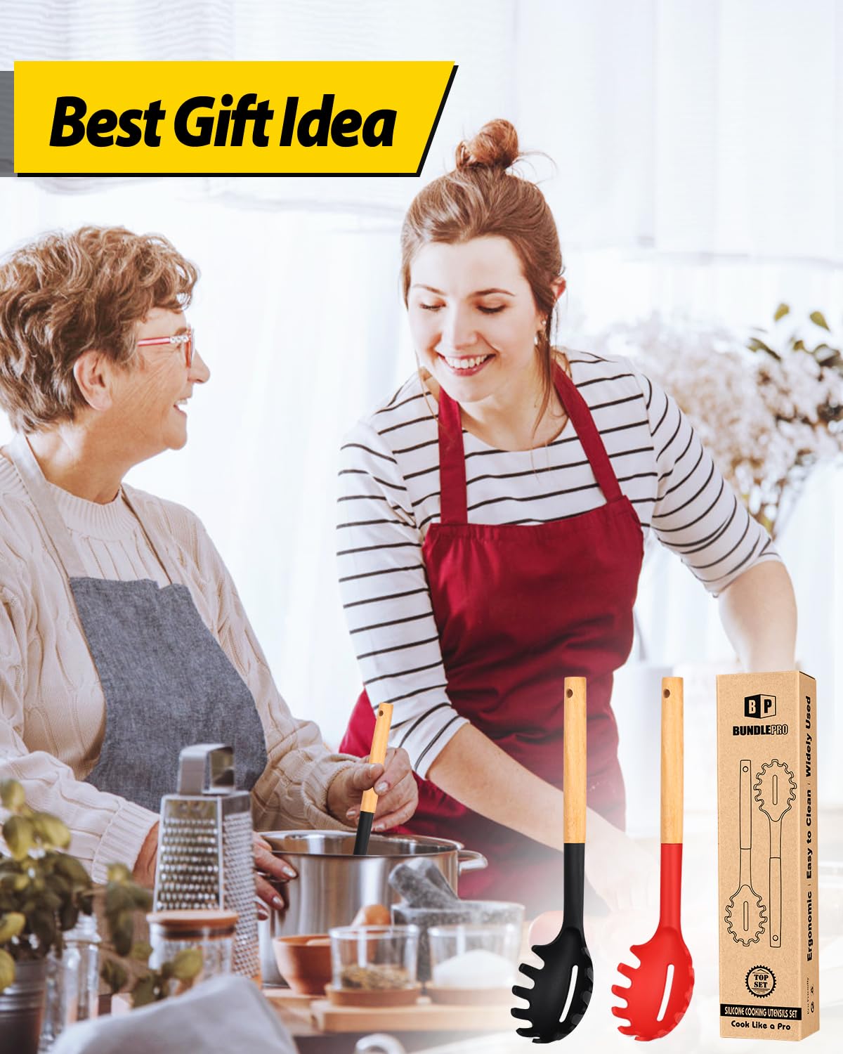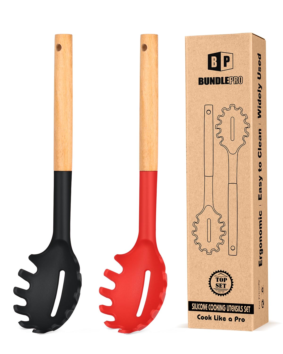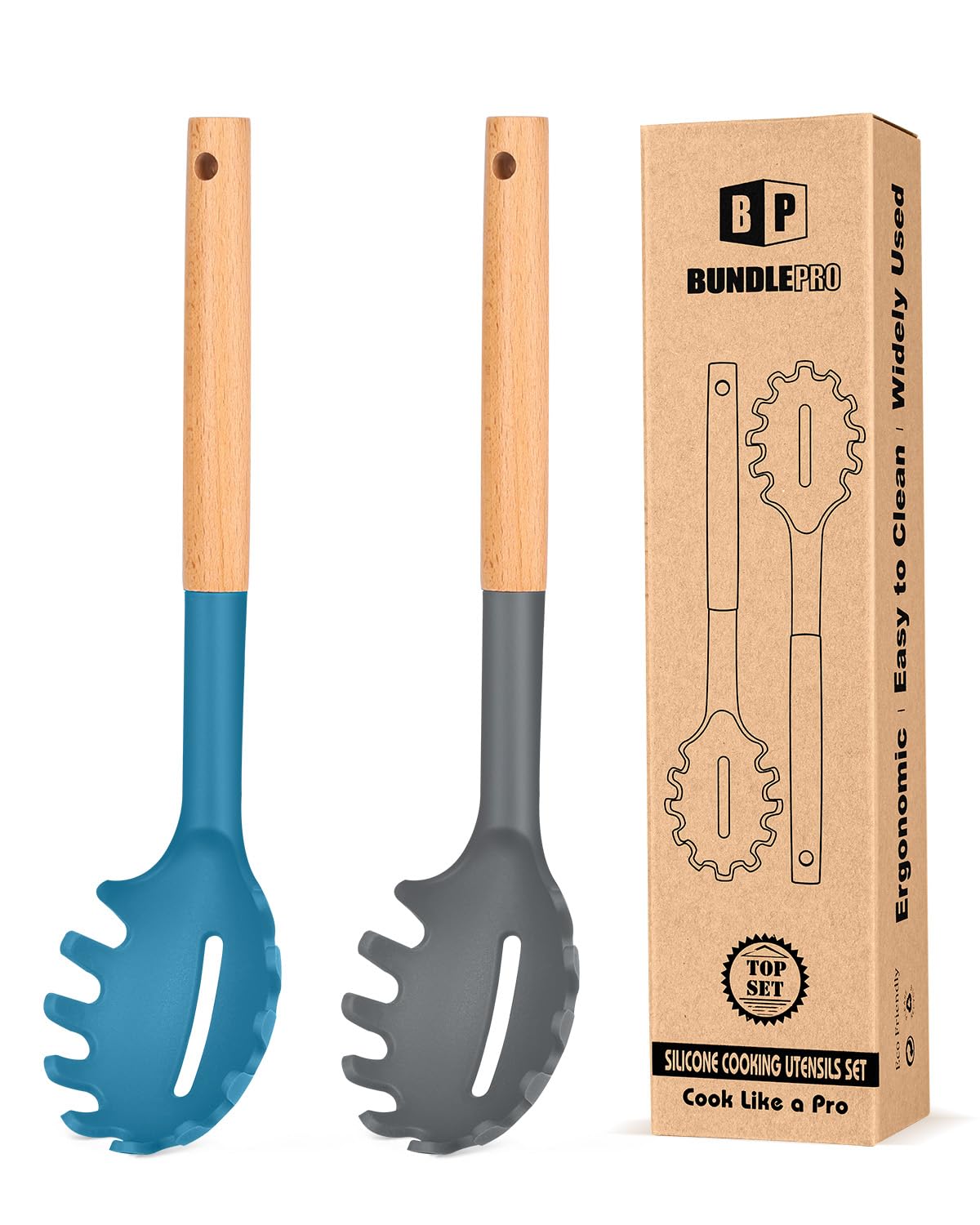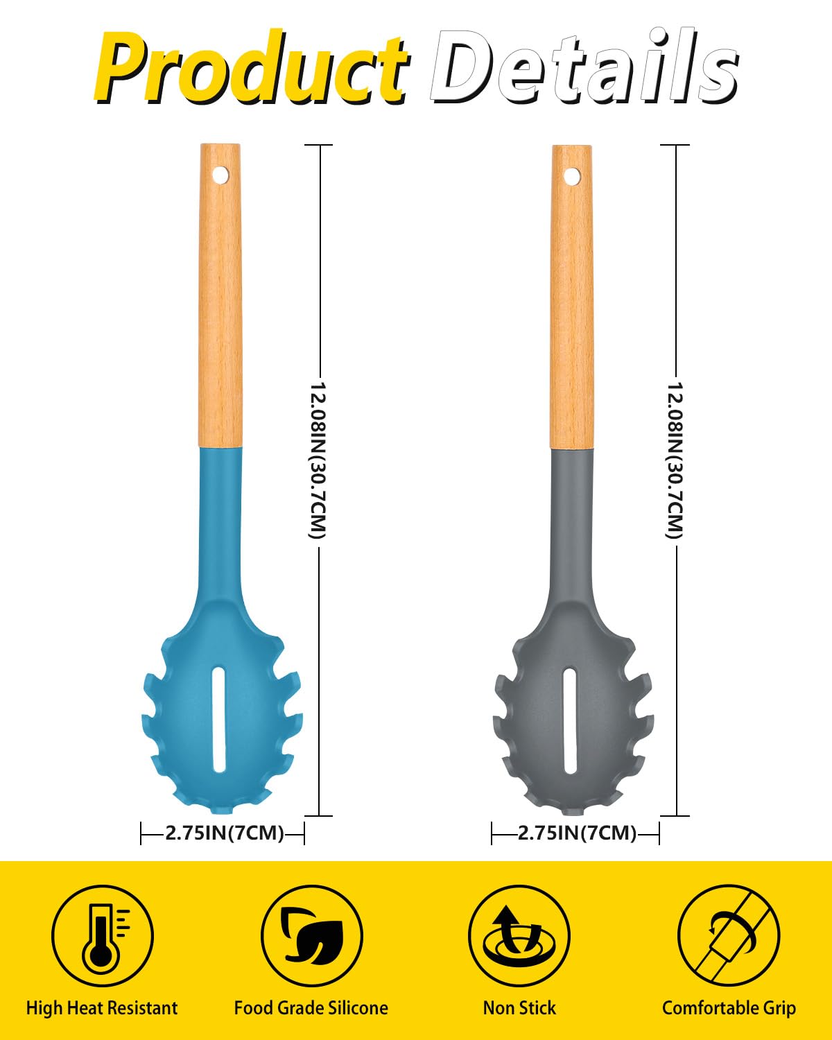 - More Safe and Healthy : Our spaghetti spoons are made of food-grade silicone, free of BPA;Even at high temperatures, there is no need to worry about melting or deforming;And the soft silicone head won't scratch the coating, it can better protect your pot