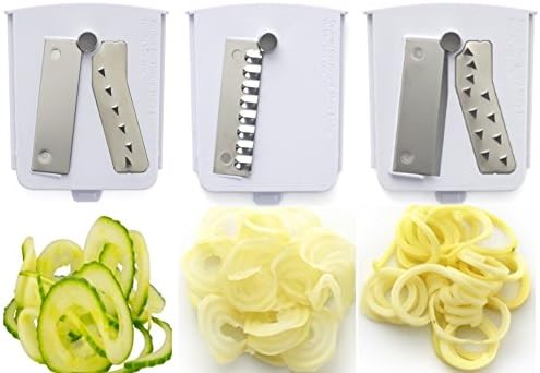 - Included in the pack are: a 12 mm Julienne blade to create 12 mm wide vegetable noodles, a Wavy Slicer blade to create crinkle chips, and a true Curly Fry blade to create 4 mm thick, 5.5 mm wide curly fries.