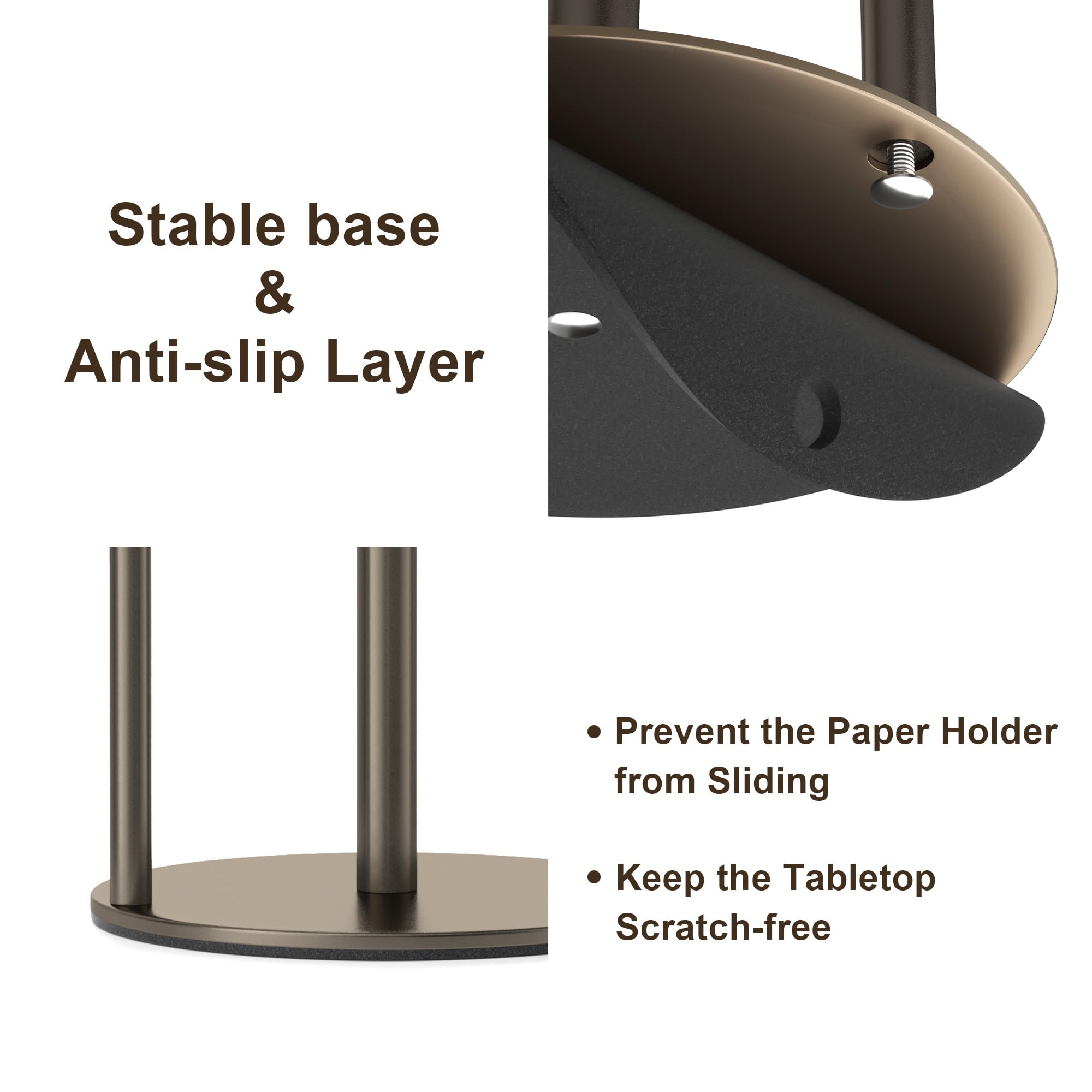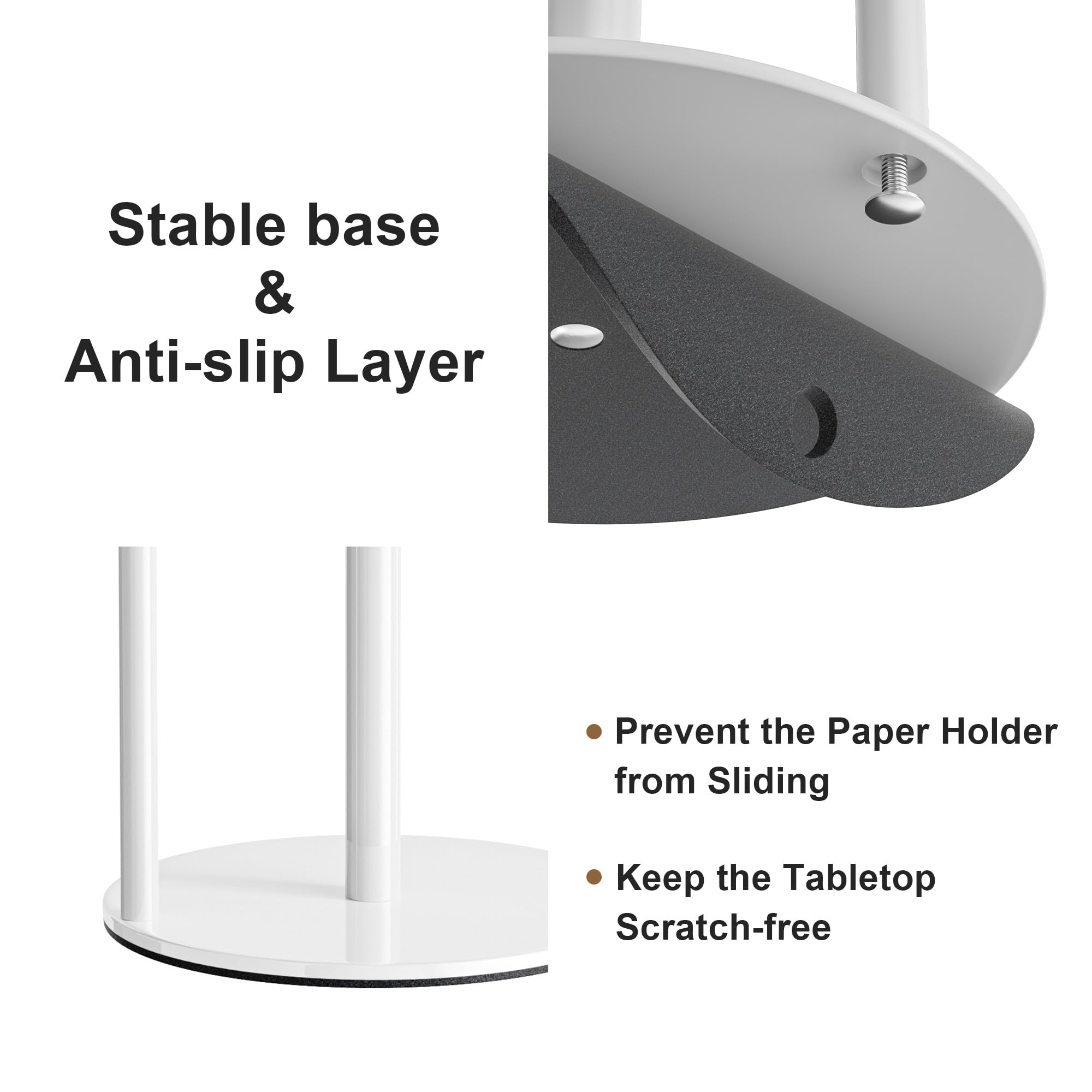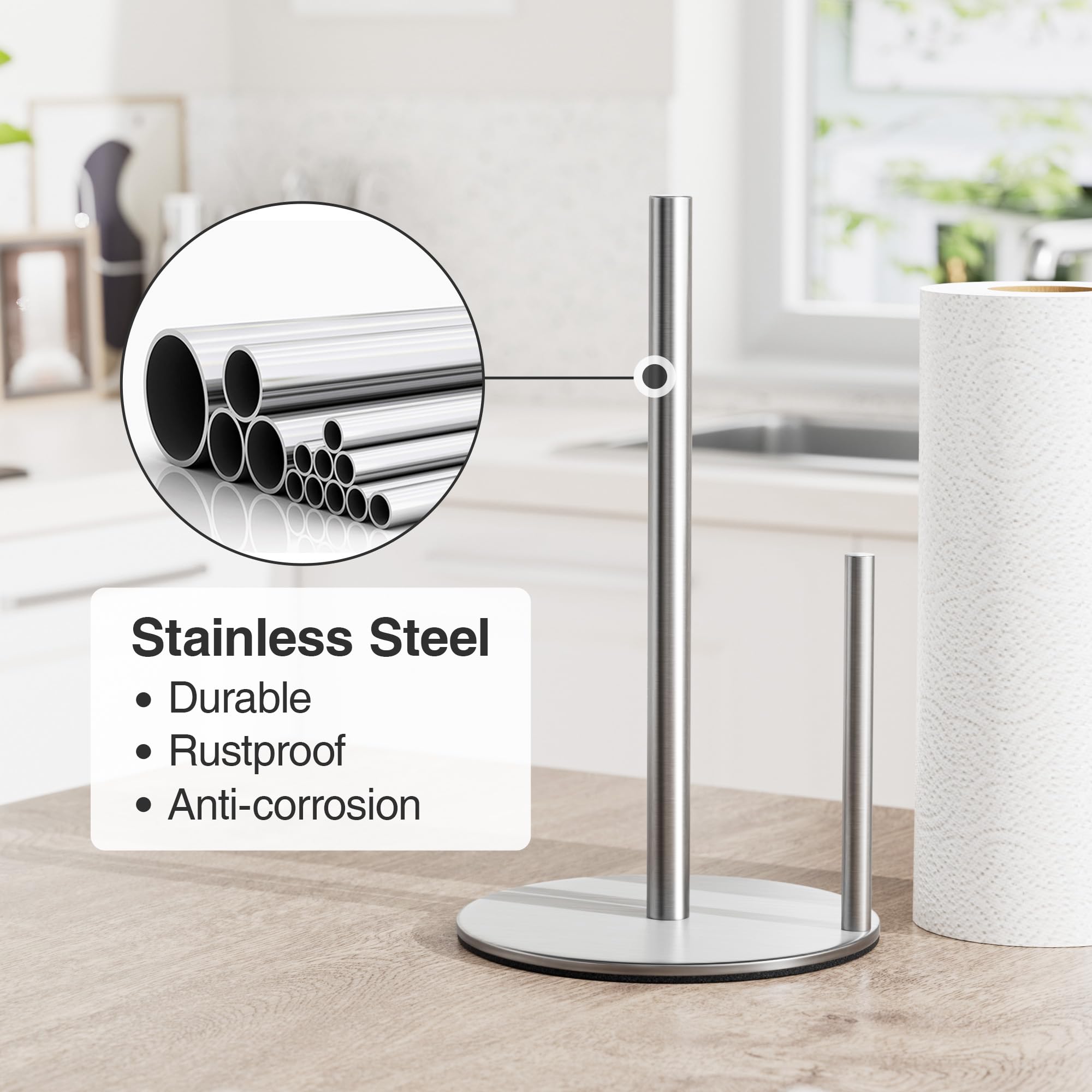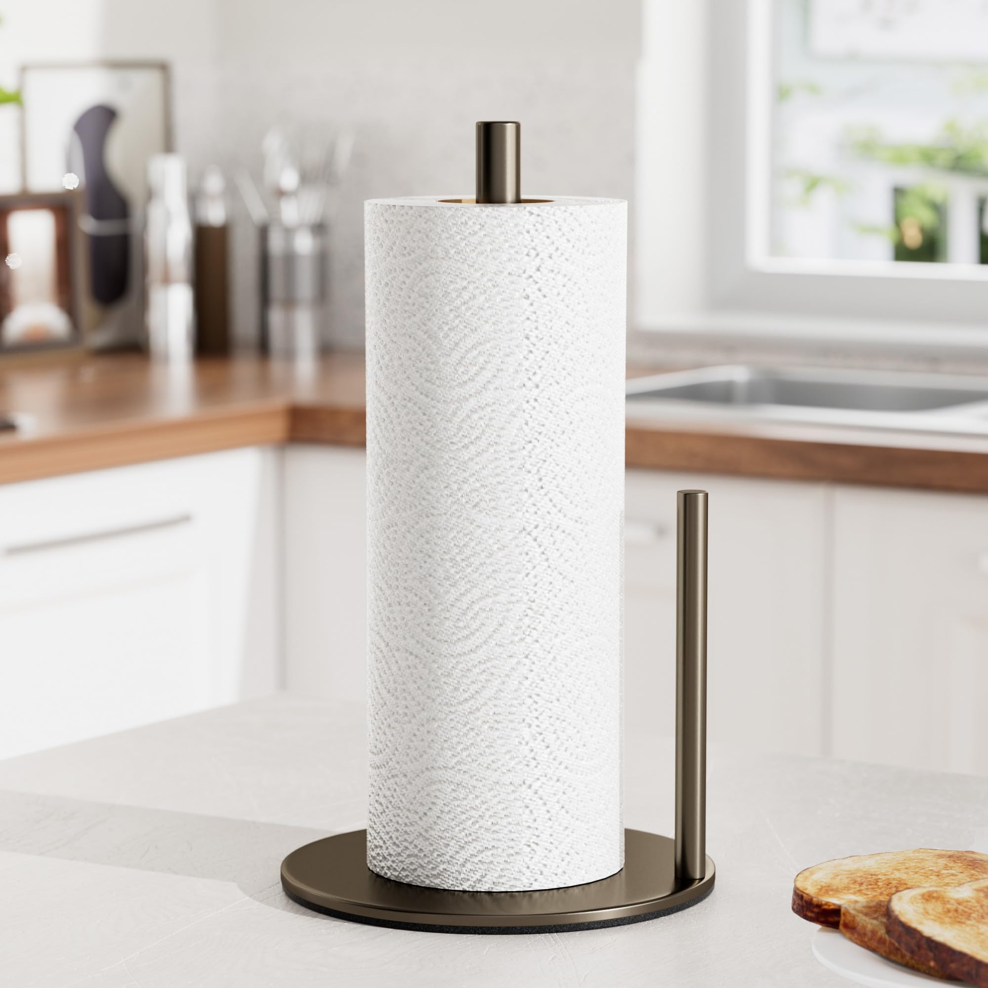 - Stable Base: The paper towel holder has a weighted base, can help you one hand-operate easily, and a non-slip silicone pad is added on the bottom to stay the paper towel holder in place when you are tearing paper sheets. It also prevents the mental scratching of your countertop.