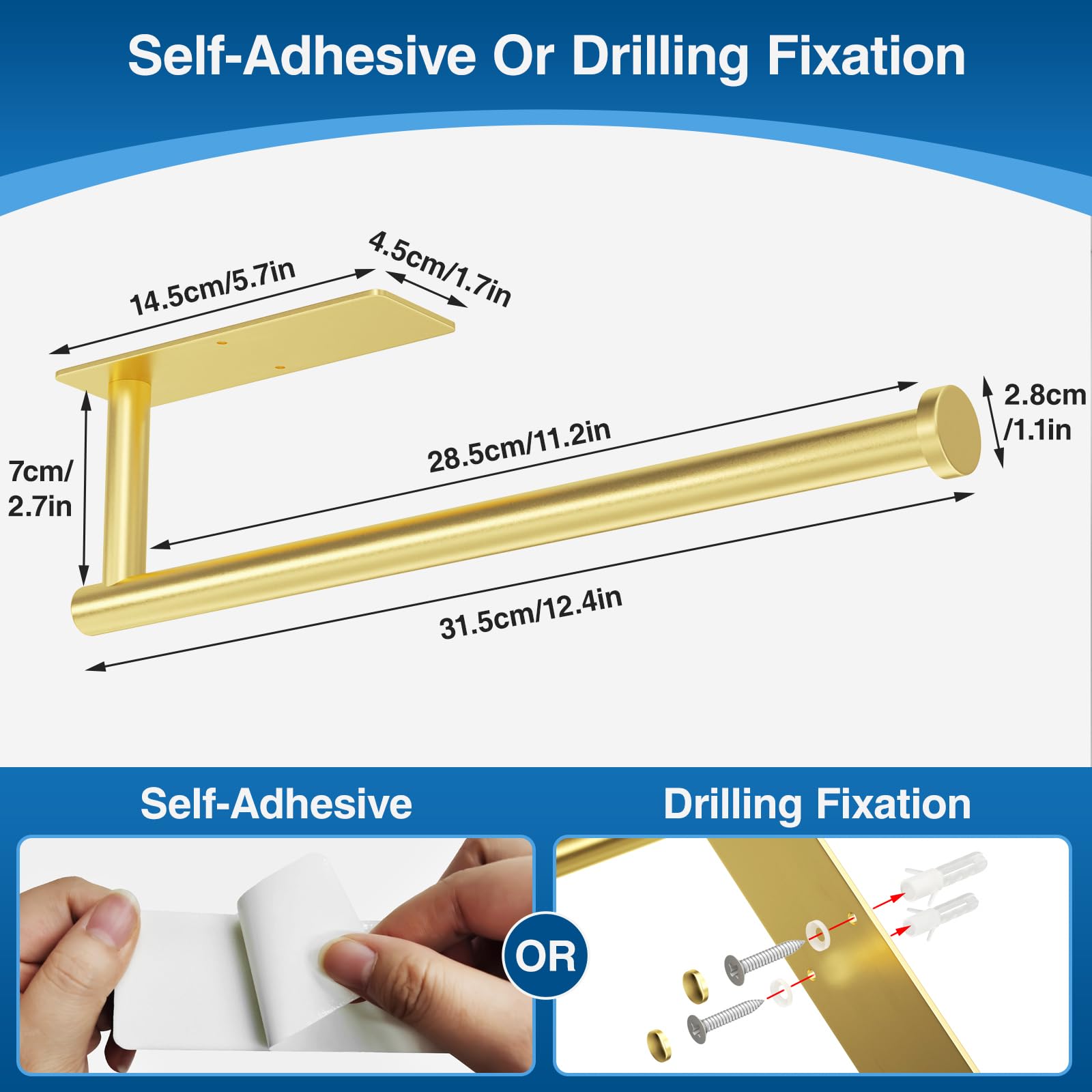 - Easy Installation: There are two ways to install this paper towel holder, self-adhesive or drilled, you can freely choose the appropriate installation method according to your wall or cabinet situation.
