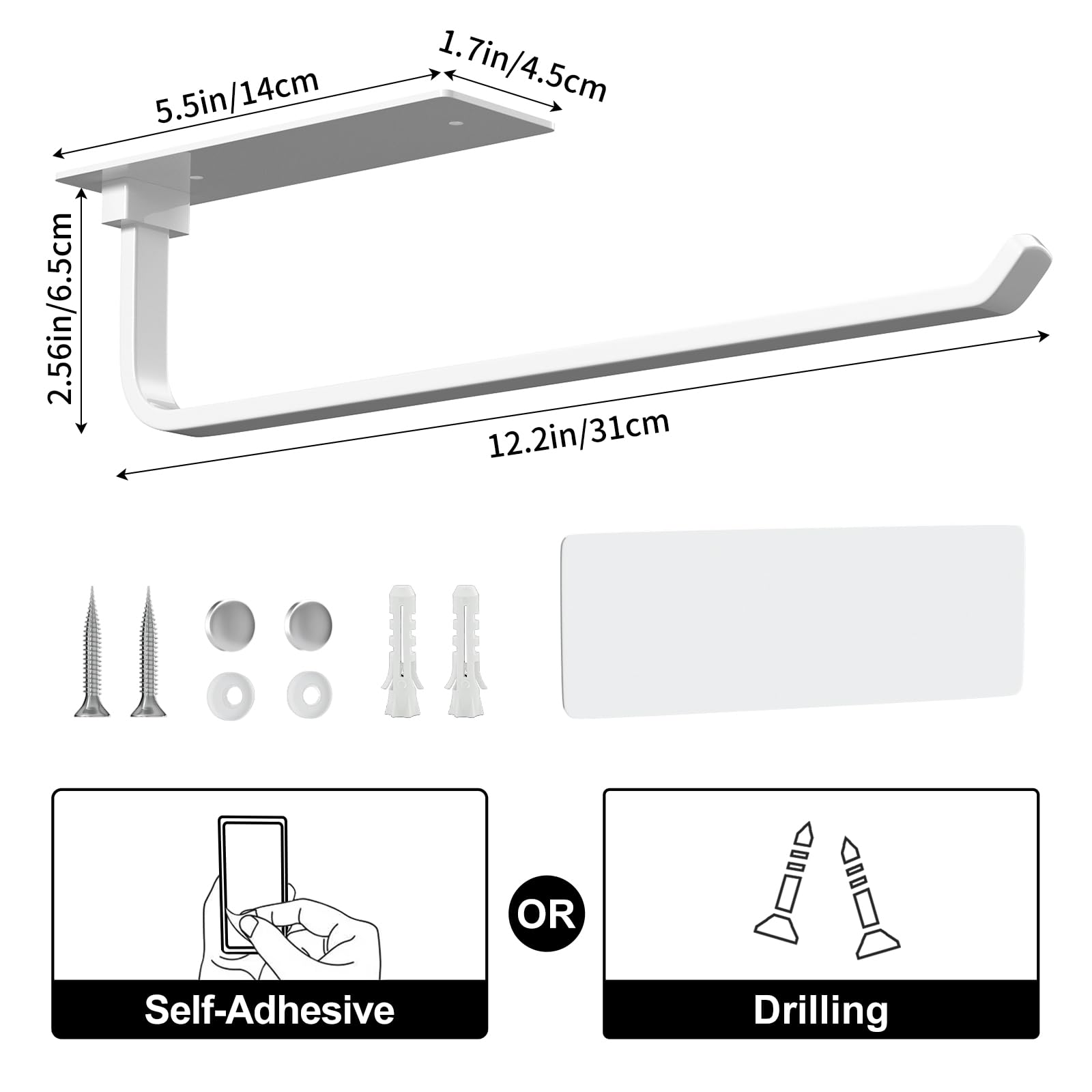 - Easy Installation: There are two ways to install this paper towel holder, self-adhesive or drilled, you can freely choose the appropriate installation method according to your wall or cabinet situation.