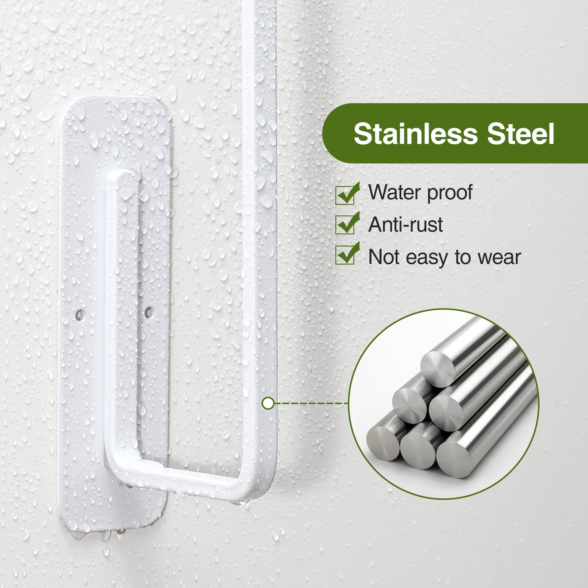 • Non-hollow Aluminum Alloy - The rail of this paper towel holder is made of high-quality aluminum alloy material, it is waterproof, rust-proof, easy to clean, and has longer service life than 304 stainless steel.