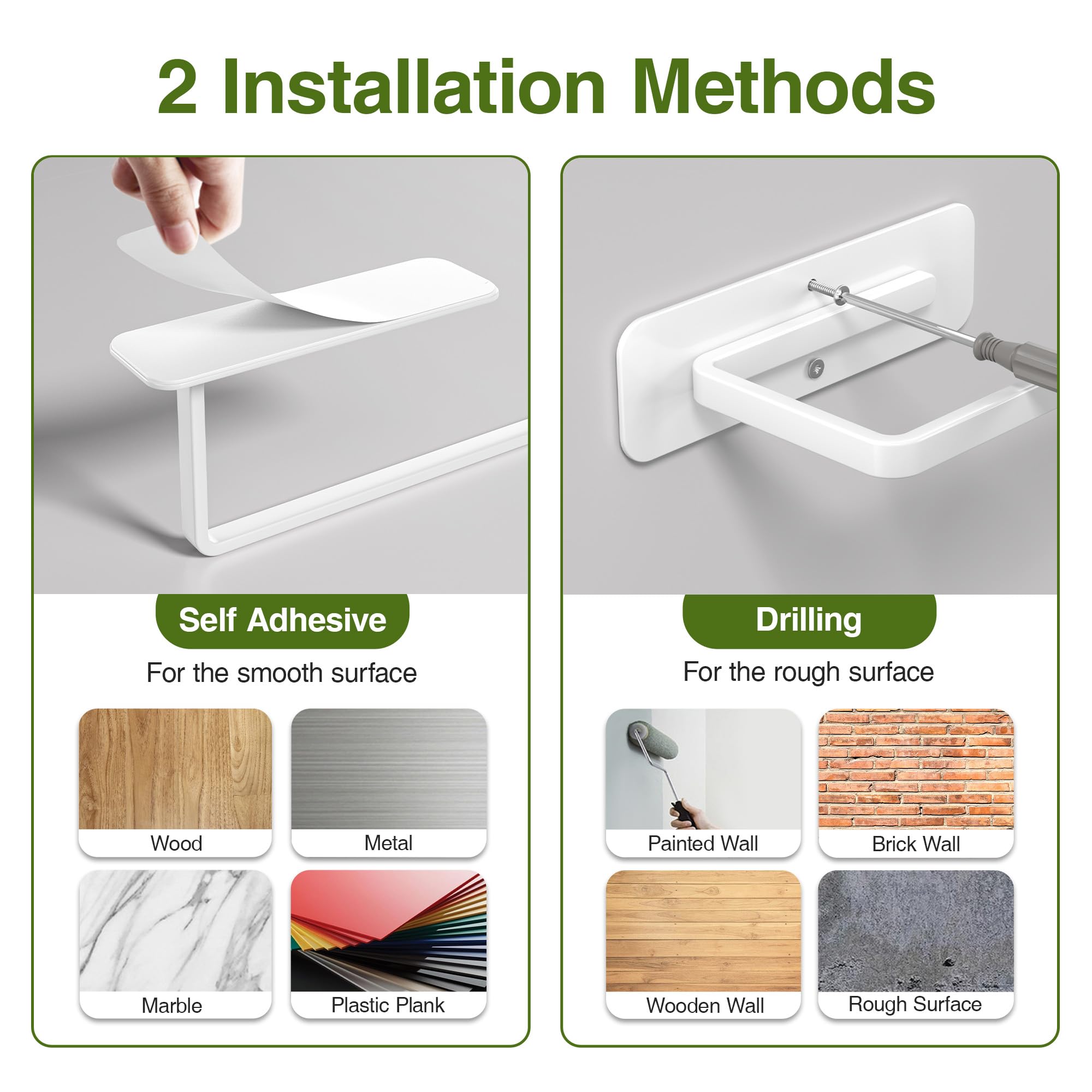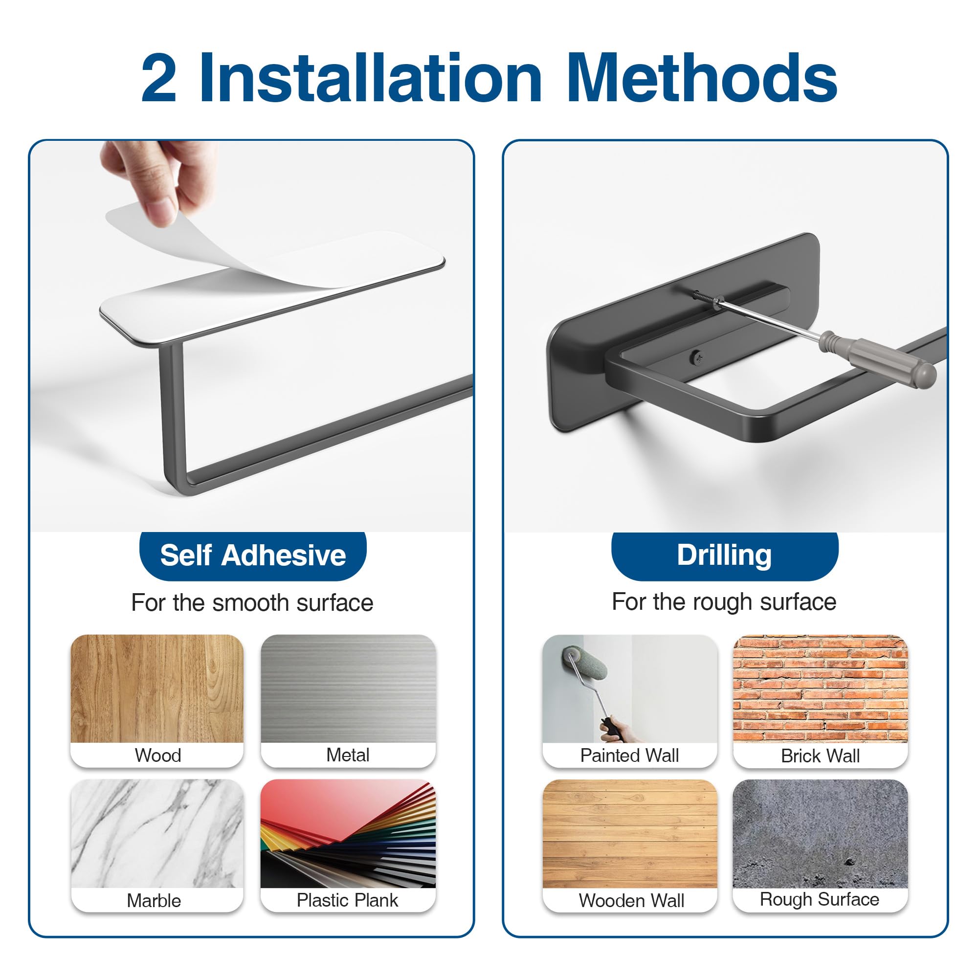 • 2 Installation Ways - Self-adhesive or drilled method can be used to install this under counter paper towel holder, so it fits almost all walls and cabinets.