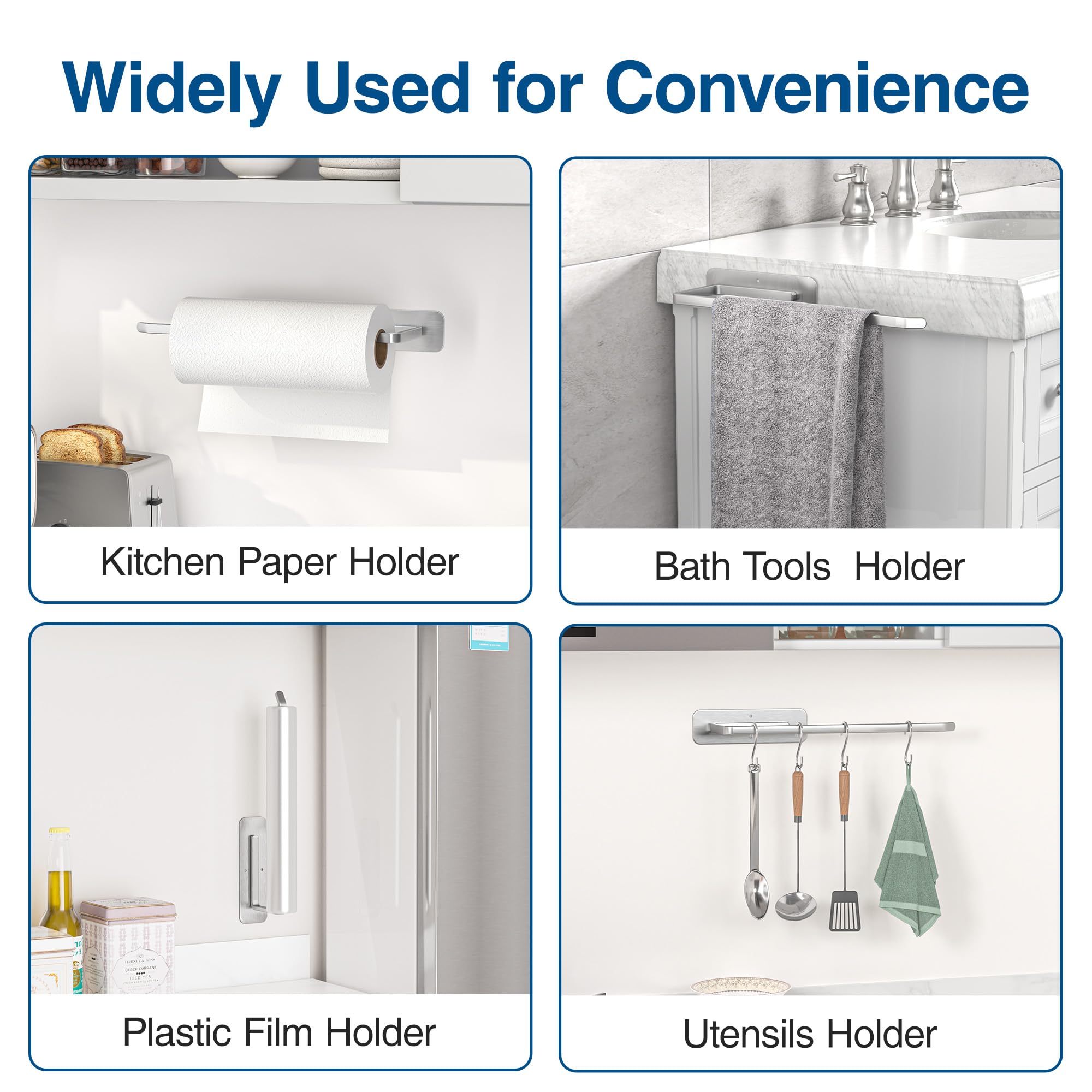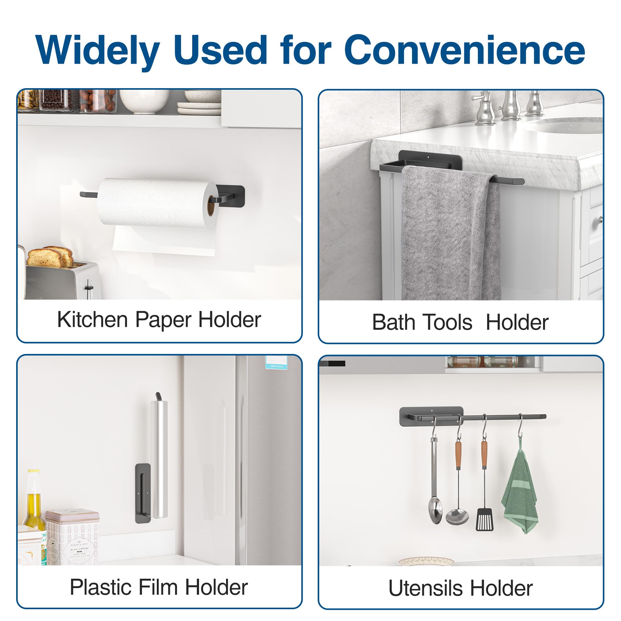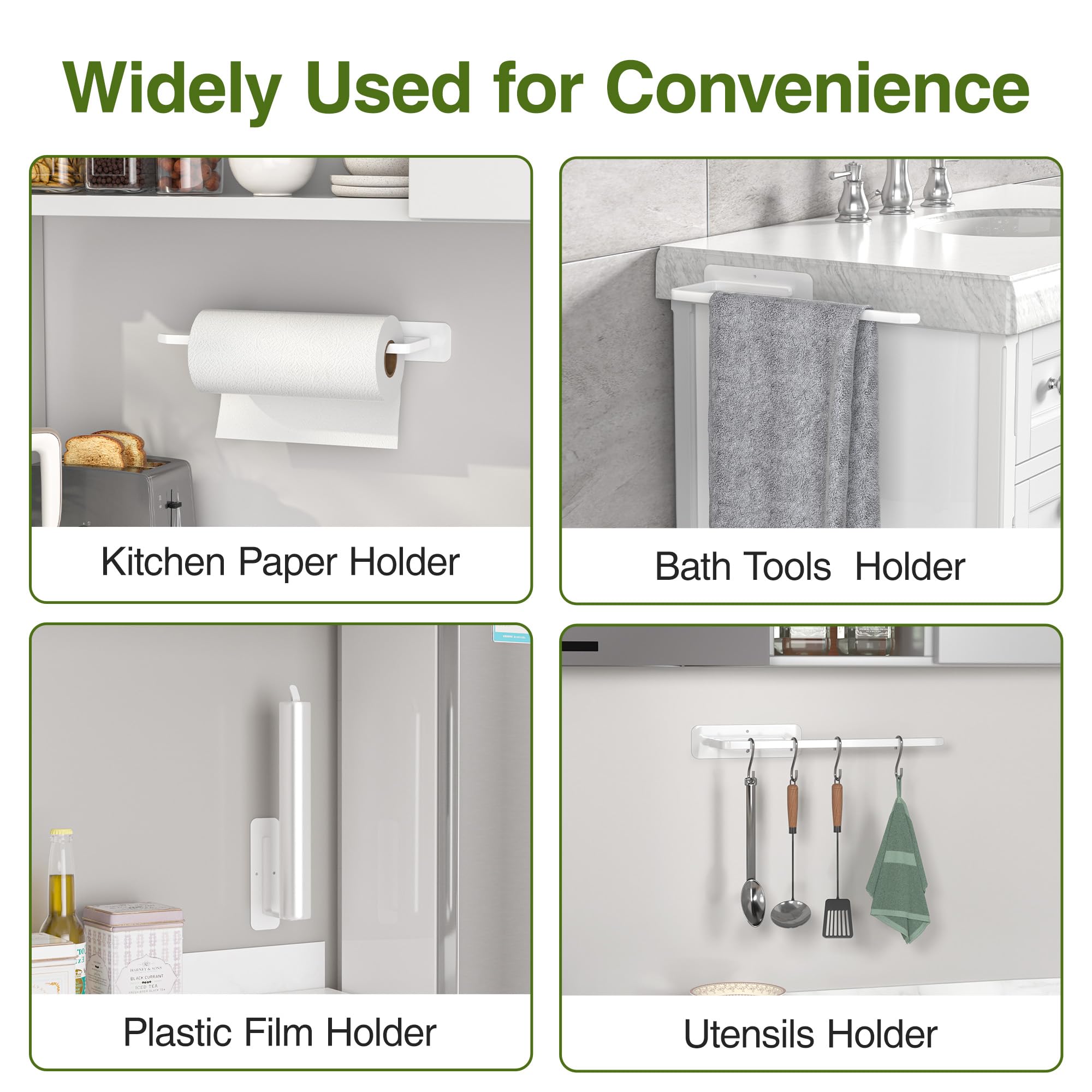 • Size and Various Usage Scenarios - The length of this paper towel holder rail is 12.2 inches, which is enough to be used to hang towels, paper towel roll, plastic wrap. It's a good choice for your cabinet, kitchen, bathroom, living room, restroom.