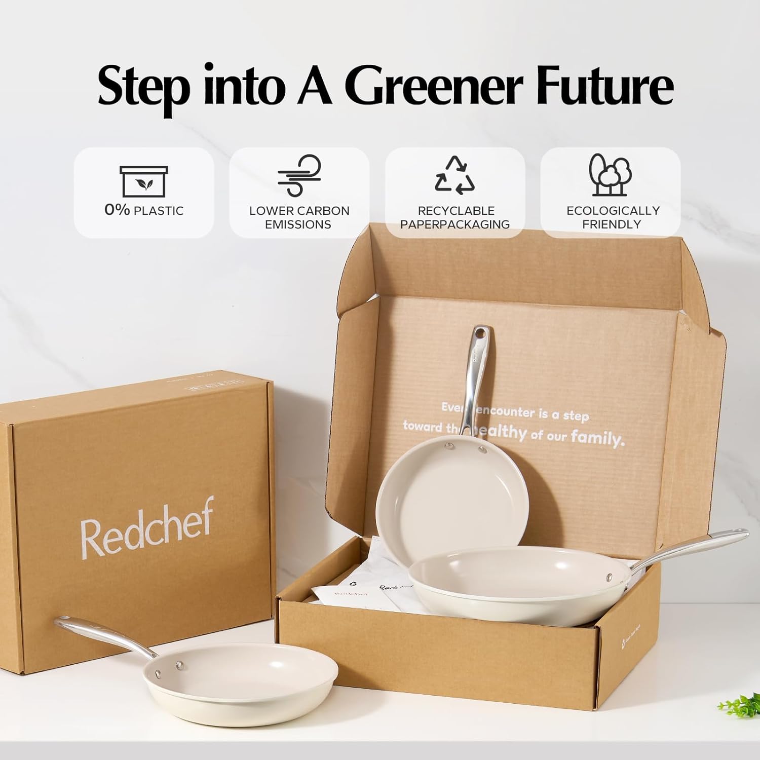 • HEALTHY CERAMIC COATING: Redchef's signature nonstick ceramic coating is free from Teflon, PFAS, PTFE, PFOA, lead, and cadmium, 100% Non-toxic. Ensuring a safe and healthy cooking experience.