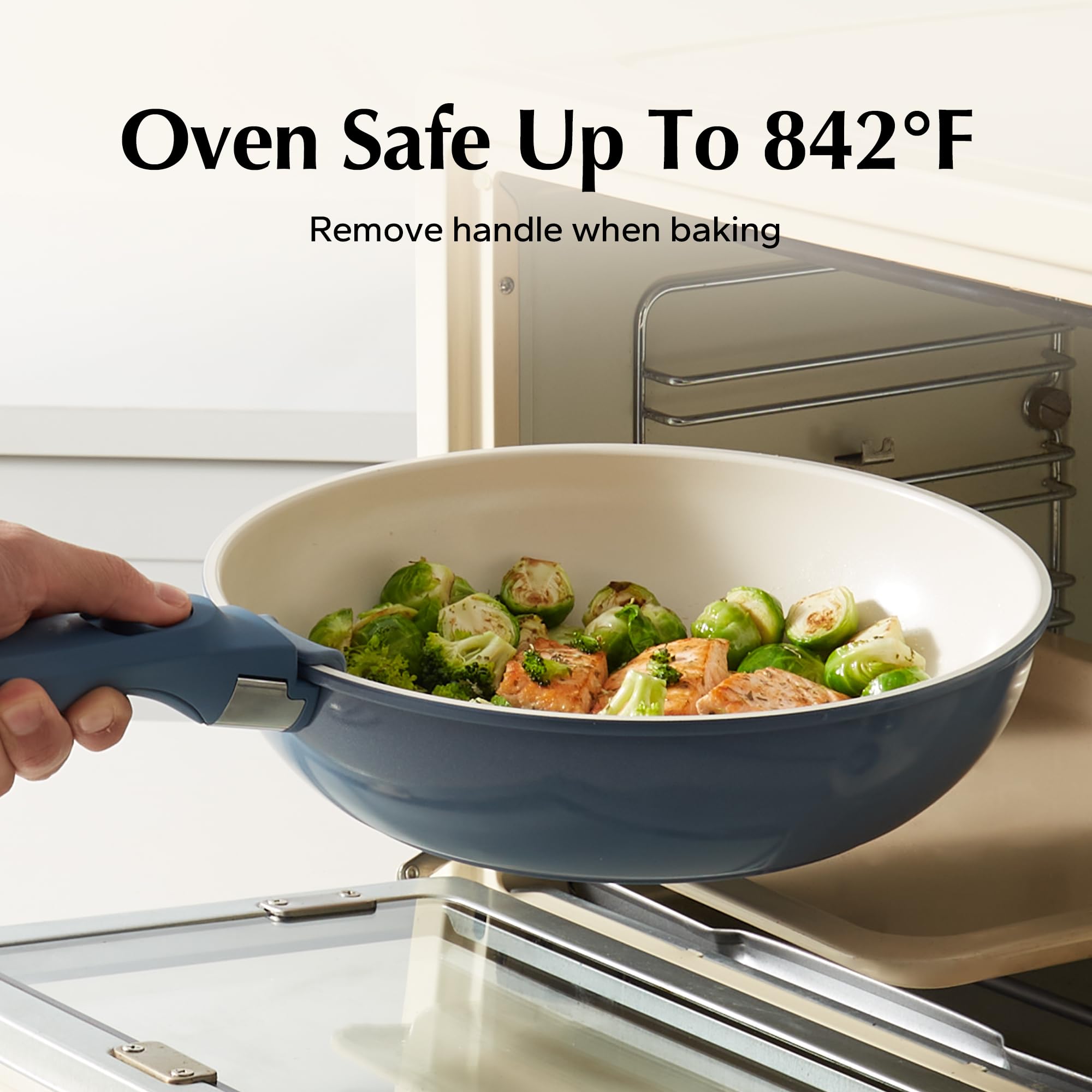 • Ultimate Convenience: Removable handle for the ultimate versatility– go from ALL kinds of stoves to the oven, to the grill, to the fridge, and onto the table in one click; The handle's detachability brings a new cooking style