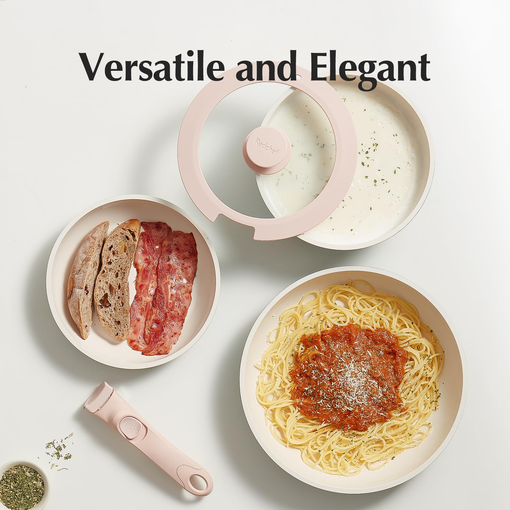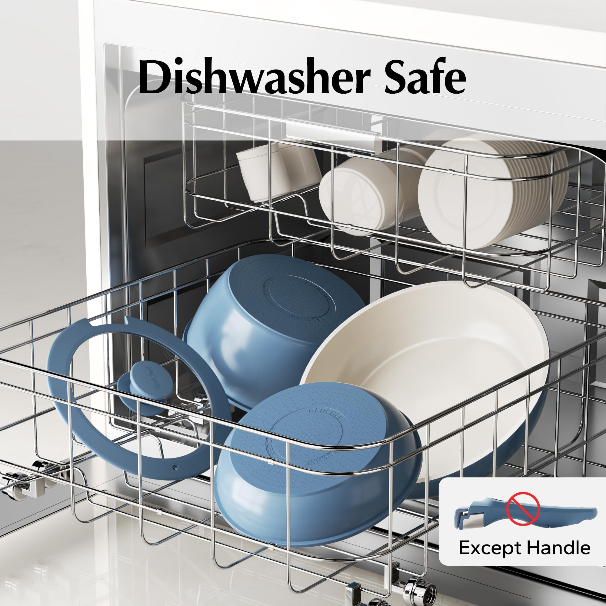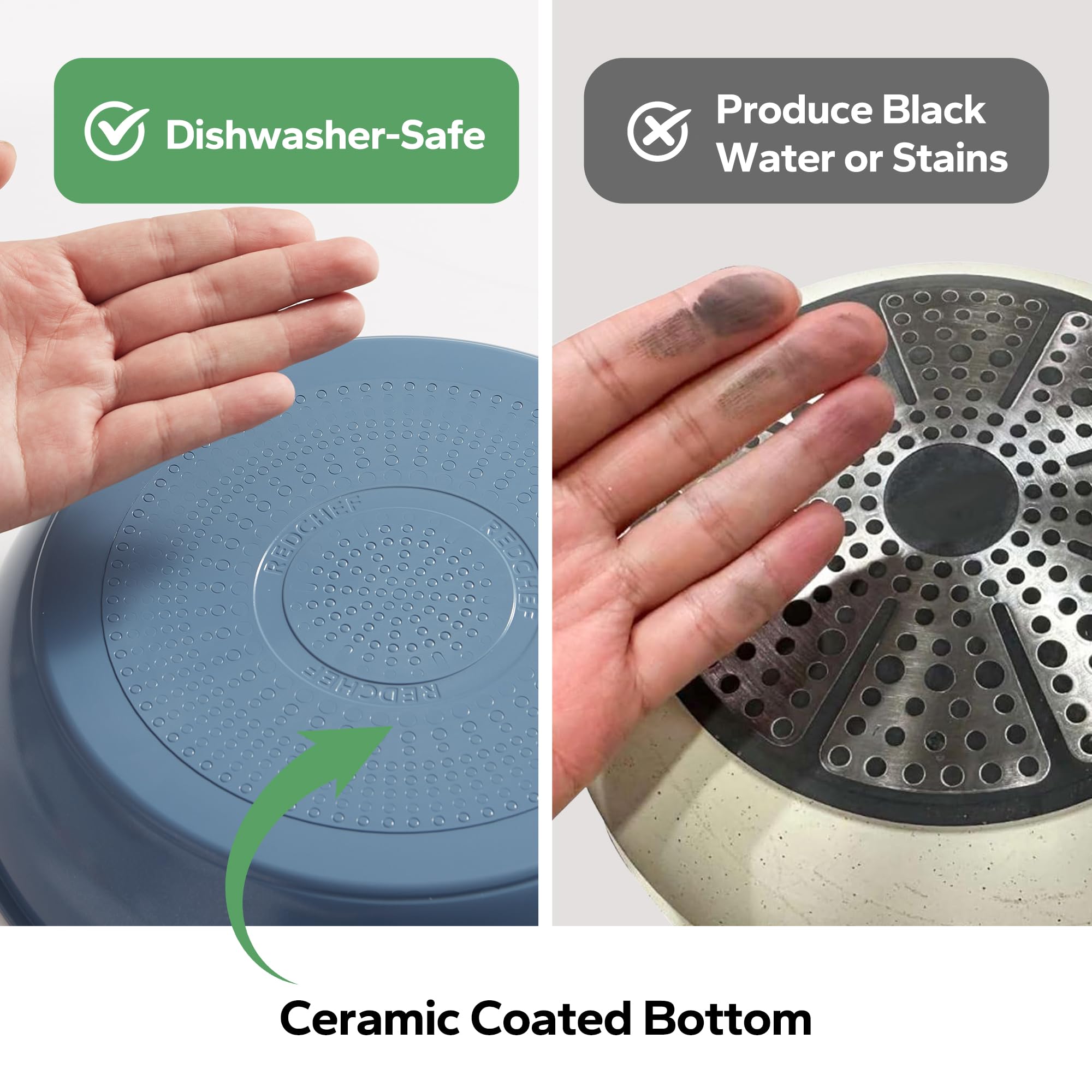 • Natural Ceramic Coating: Made of natural ceramic, our Redchef kitchen ceramic cookware set is no Teflon and no PFAS, PTFE, PFOA, lead, or cadmium