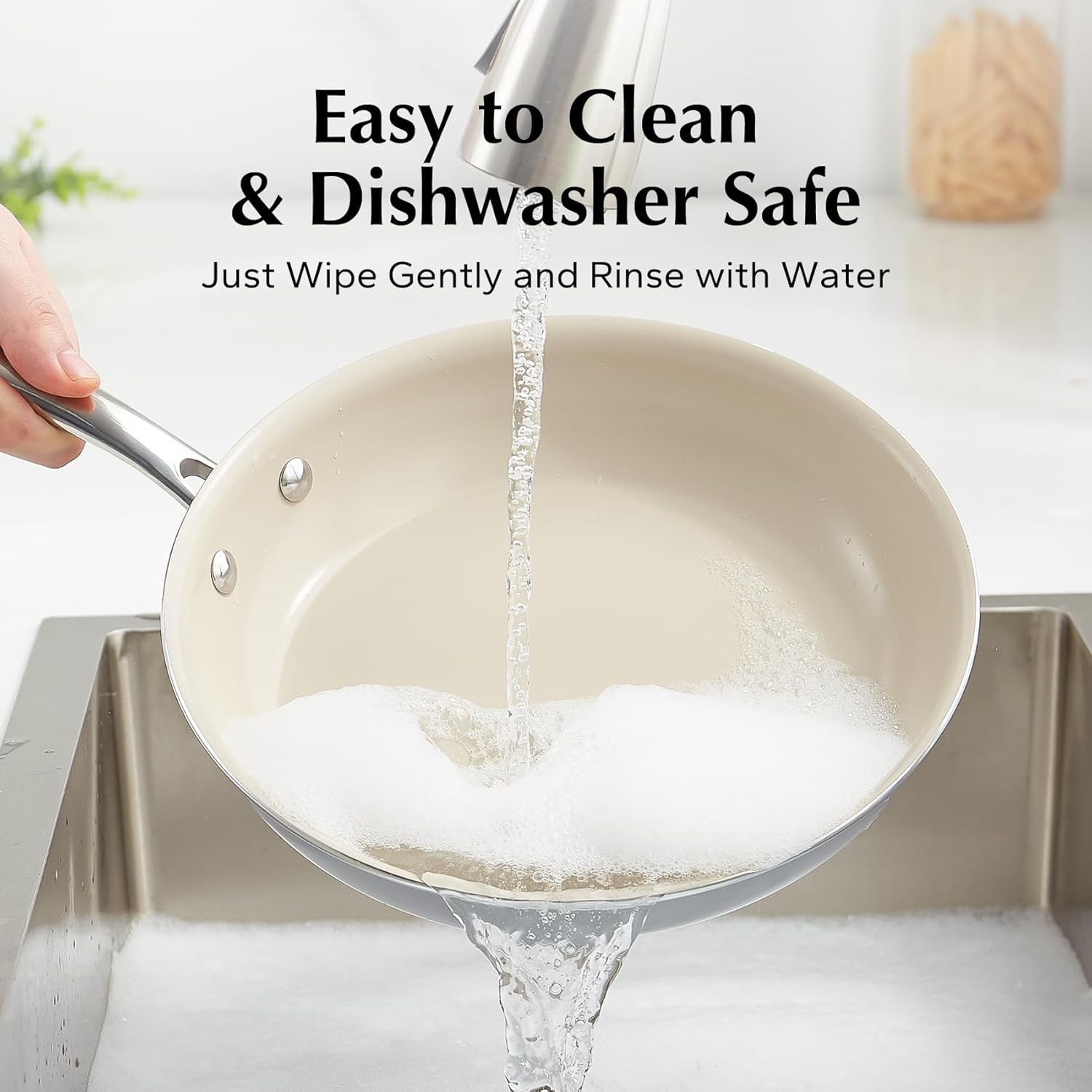 - Natural Ceramic Coating: Made of natural ceramic, our Redchef kitchen ceramic cookware set is no Teflon and no PFAS, PTFE, PFOA, lead, or cadmium