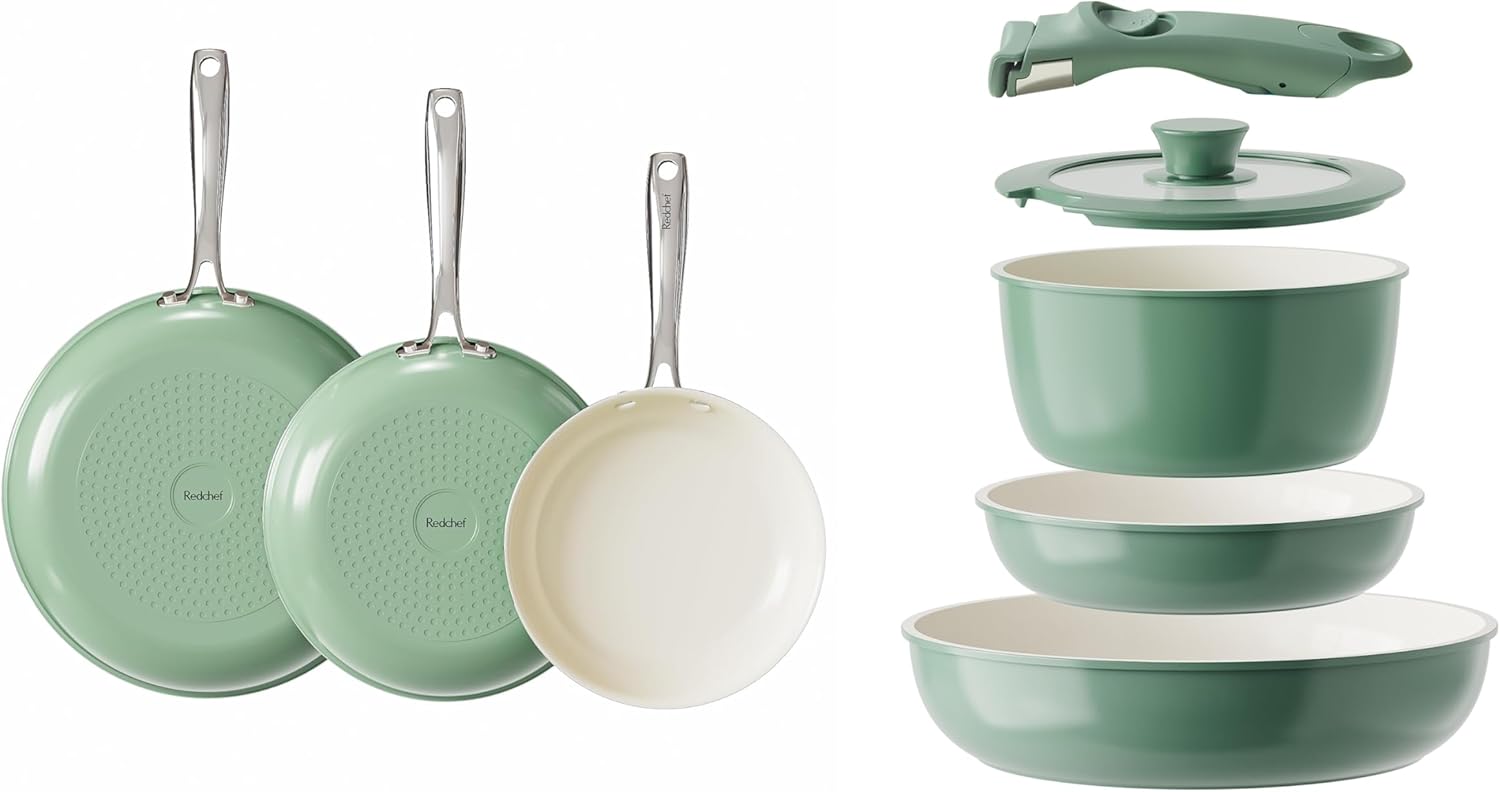 If you are looking for good quality and healthy ceramic nonstick pans and pots sets cookware, you shall check with our Redchef detachable non-stick cooking sets.