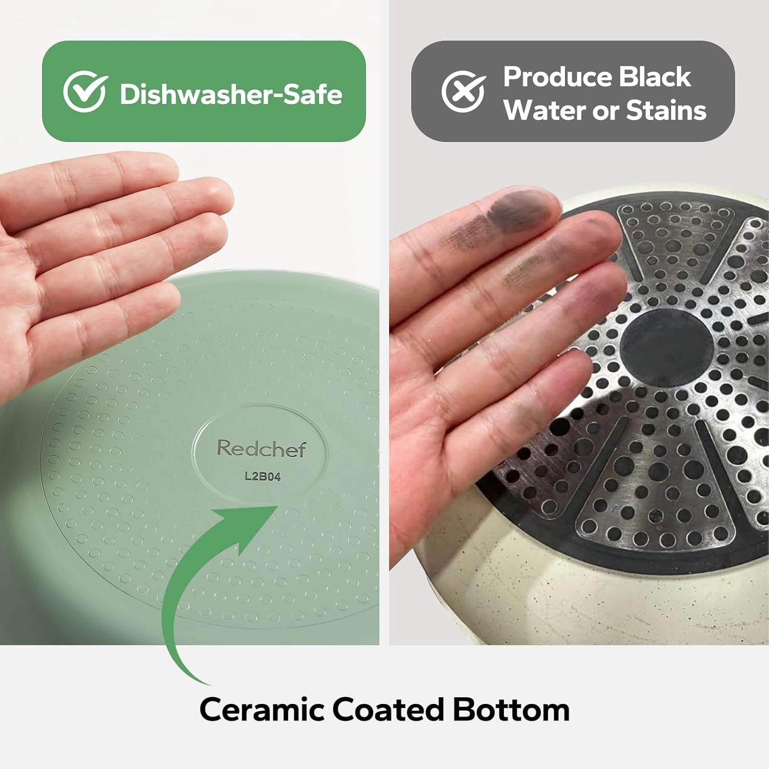 - Natural Ceramic Coating: Made of natural ceramic, our Redchef kitchen ceramic cookware set is no Teflon and no PFAS, PTFE, PFOA, lead, or cadmium