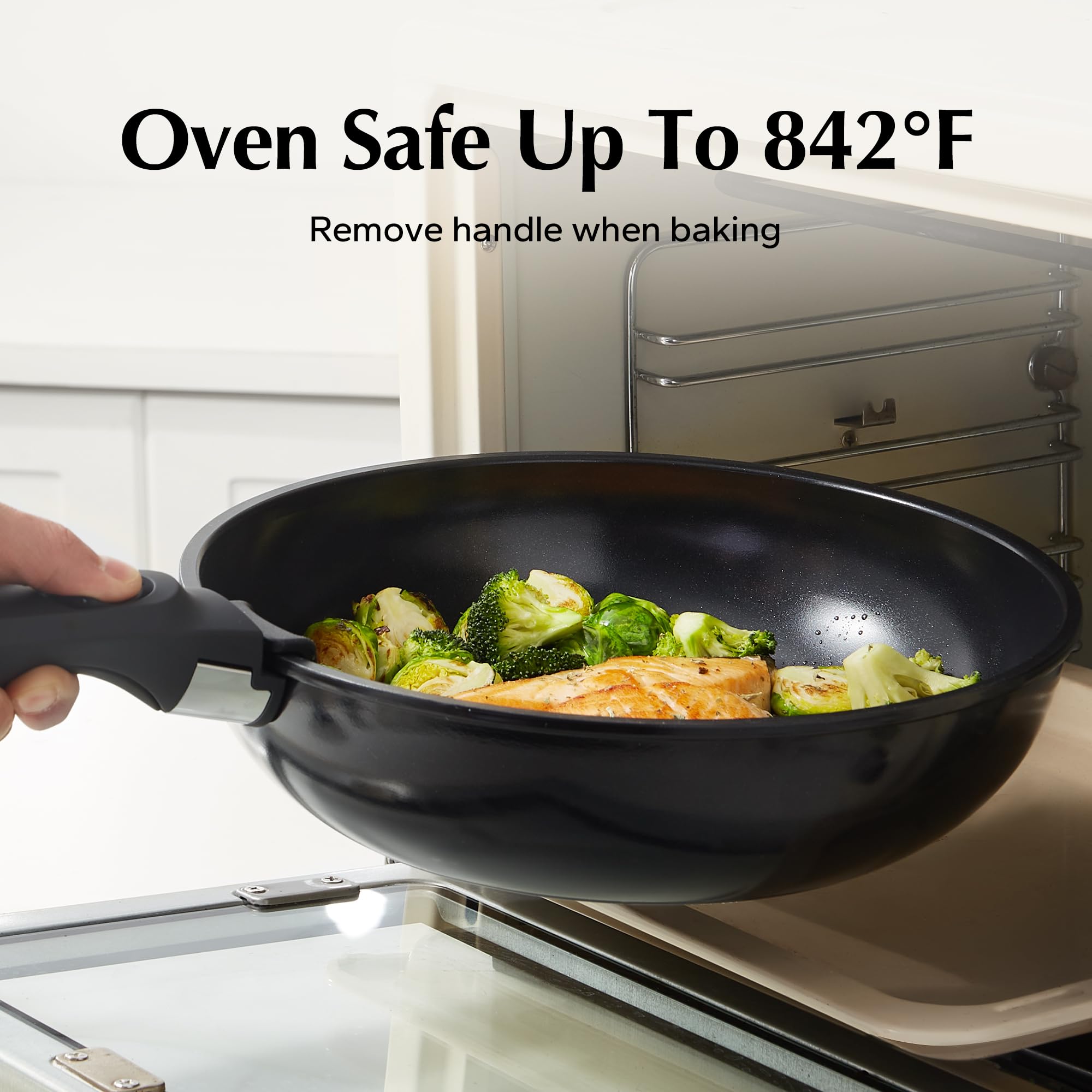 • Ultimate Convenience: Removable handle for the ultimate versatility– go from ALL kinds of stoves to the oven, to the grill, to the fridge, and onto the table in one click! The handle's detachability brings a new cooking style