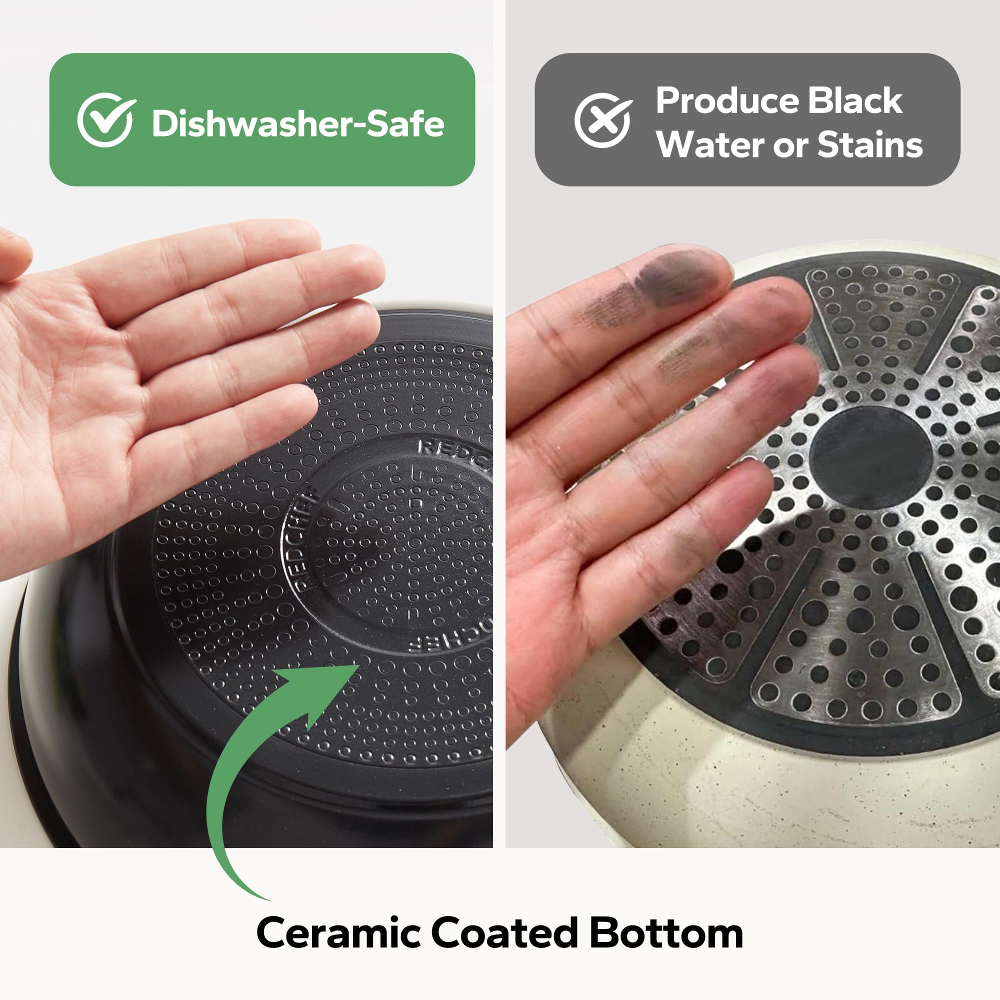 • Natural Dual-Sided Ceramic Coating: Redchef ceramic pots and pans set boasts an innovative dual-sided ceramic coating, inside and out. This advanced ceramic finish ensures effortless cleaning, allowing you to effortlessly wash both the interior and exterior of your pots and pans