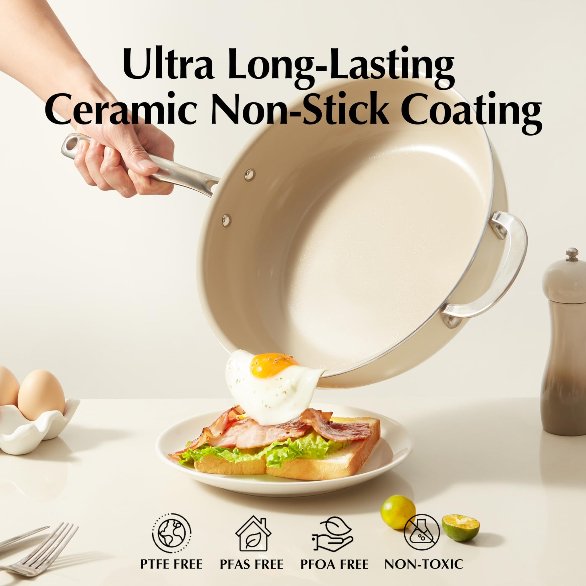 • CERAMIC COATING: Redchef's signature nonstick ceramic coating is free from Teflon, PFAS, PTFE, PFOA, lead, and cadmium, 100% Non-toxic. Ensuring a safe and healthy cooking experience