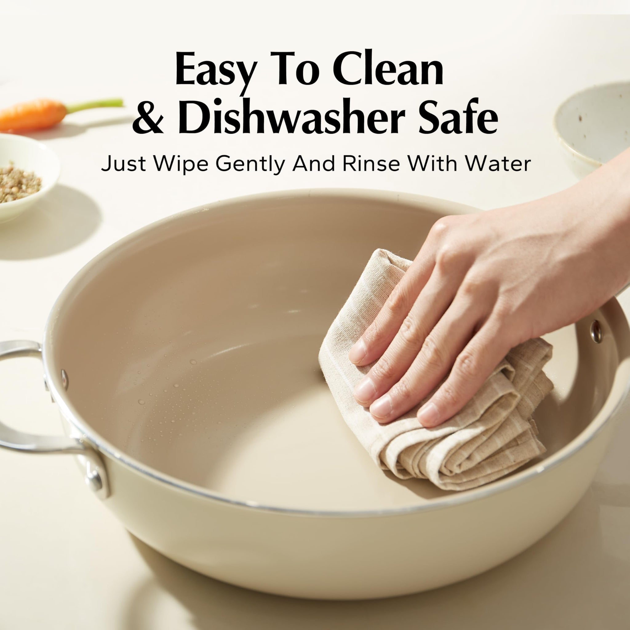 • EASY TO CLEAN & DISHWASHER SAFE: Smooth surface, just wipe clean and rinse with water. For effortless cleanup, sauté pan and lid are dishwasher safe