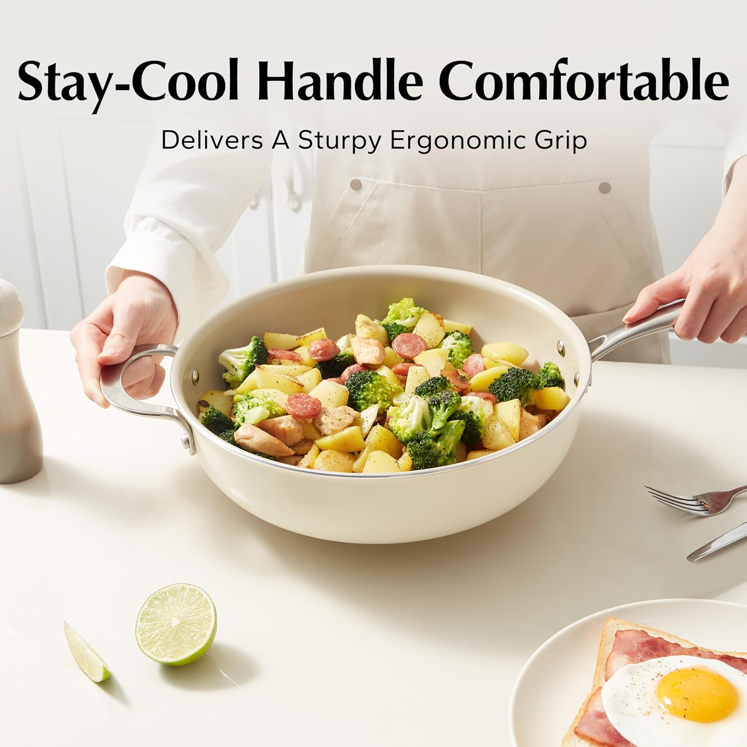 - EASY TO CLEAN & DISHWASHER SAFE: Smooth surface, just wipe clean and rinse with water. For effortless cleanup, sauté pan and lid are dishwasher safe