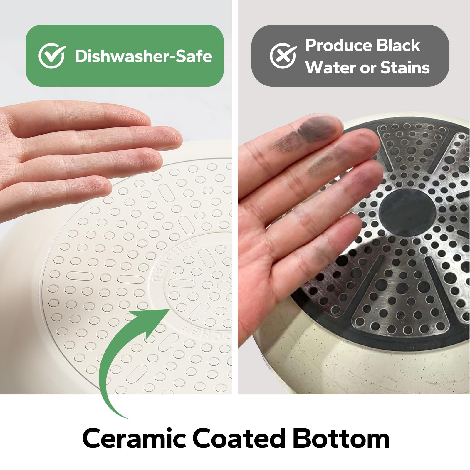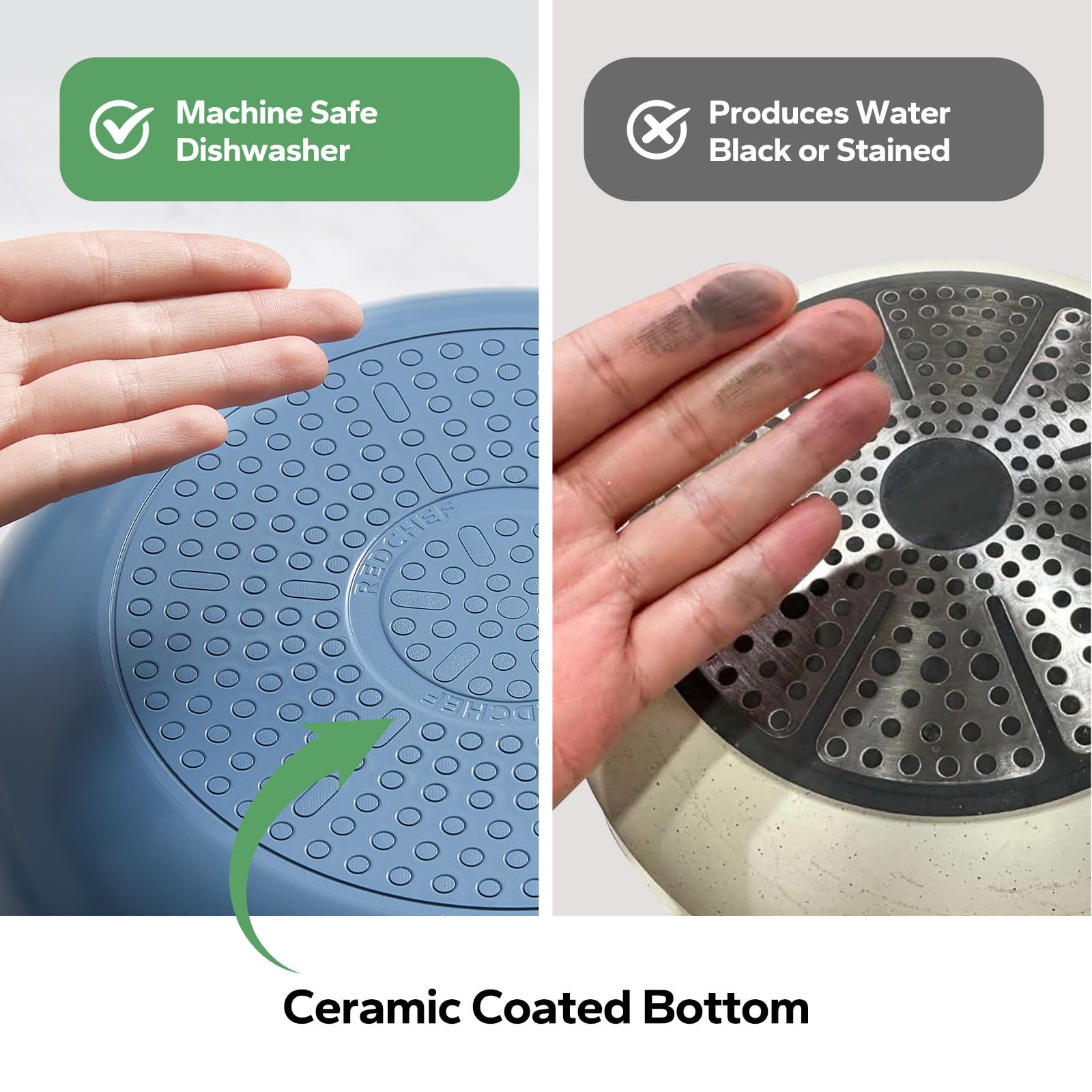 • RAPID & EVEN HEAT DISTRIBUTION: Precision-engineered with bottom, our ceramic cookware set ensures uniform heat distribution, eliminating hot spots that can disrupt your cooking. This professional-grade design disperses metal thickness consistently across the entire nonstick cooking skillet, facilitating swift and even cooking of your dishes