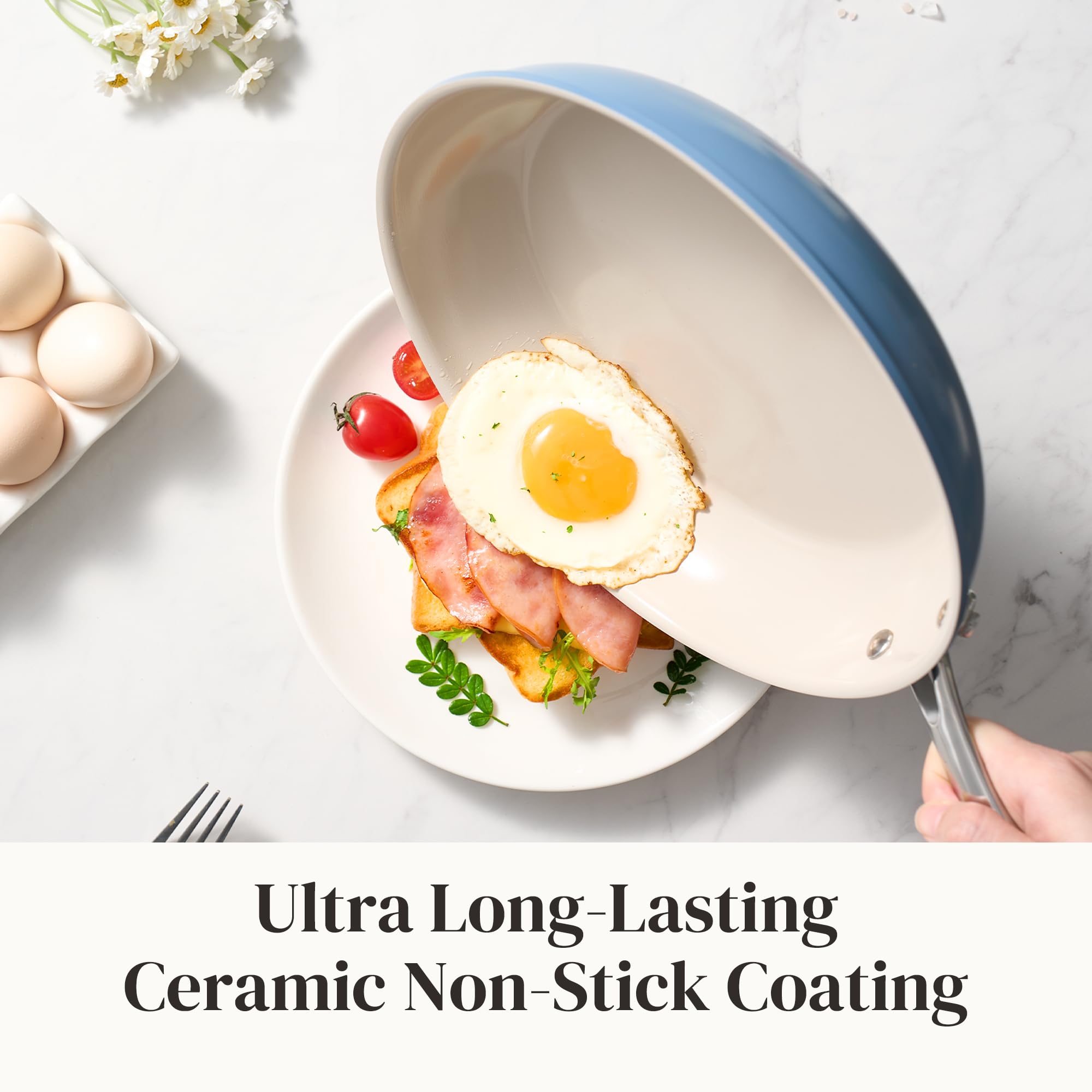 • CERAMIC NON-STICK COATING: Our innovative cooking surface undergoes a triple-layer ceramic coating process, durable and totally safe. The non stick frying pans excels in delivering outstanding nonstick performance, enabling you to prepare your favorite dishes with minimal oil or butter usage
