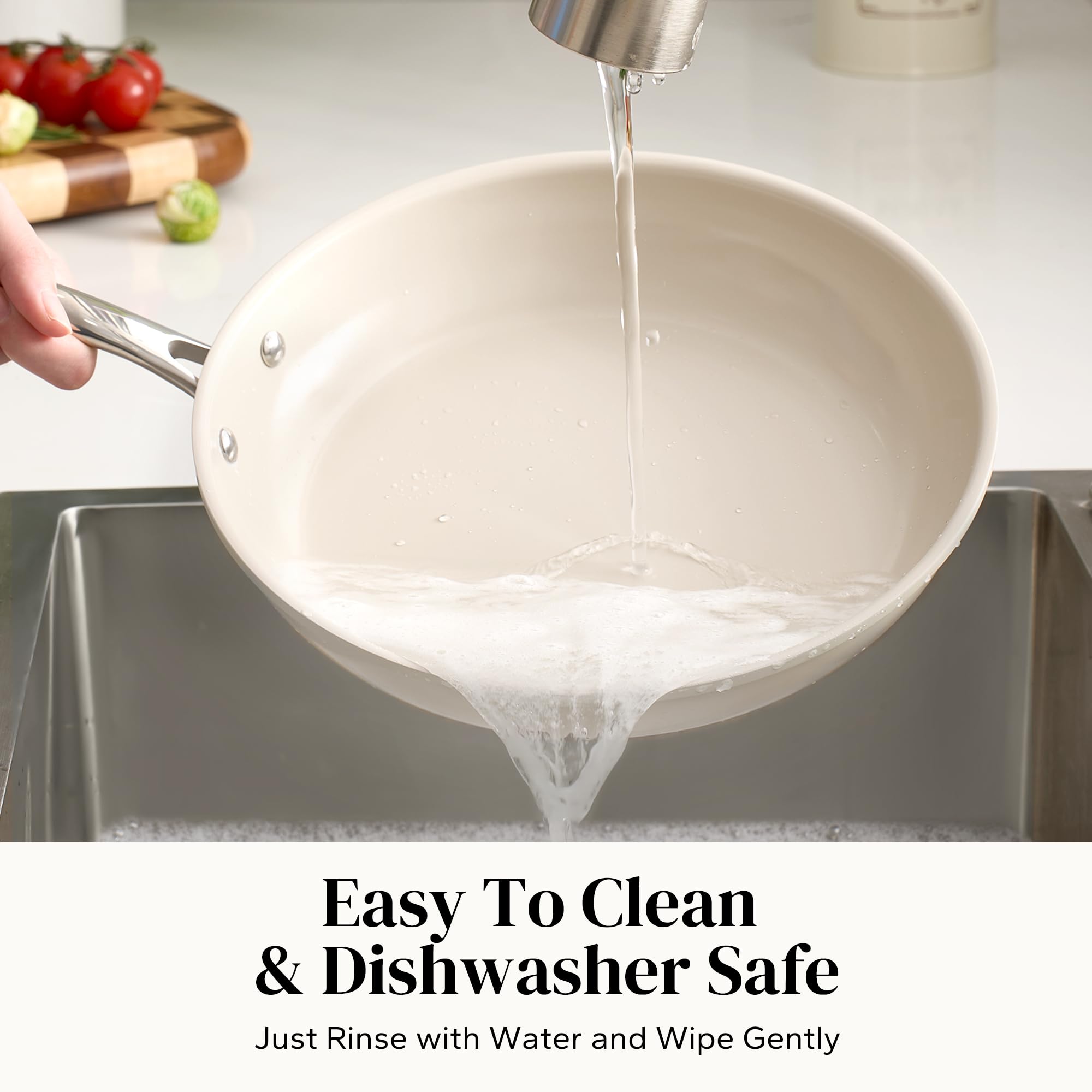 • LONG-LASTING & EASY TO CLEAN: After your culinary masterpiece is complete, a gentle wipe-down followed by a rinse with water will do the trick. For added convenience, you can also opt for a quick and easy dishwasher cleanup nonstick cookware set (Keep in mind that hand washing is a recommended option if you wish to prolong the lifes of the skillet pan's coating.)