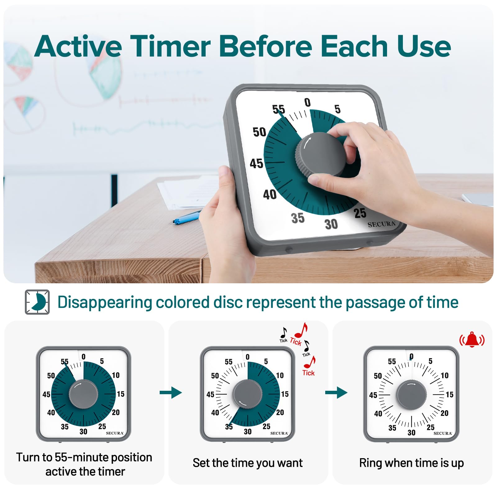 - EASY TO USE – Simply turn the control knob clockwise to expand the bright blue disk—making it easy to see the time count down visually