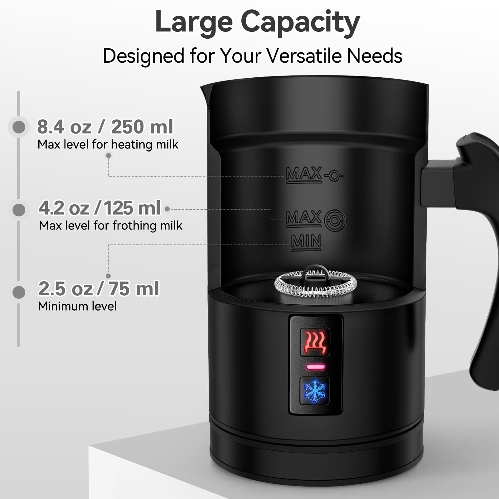- Create Milk Foam Quickly: Automatic Electric Milk Frother creates barista-quality foam in seconds—perfect for cappuccinos, macchiatos, lattes, flat whites, and more