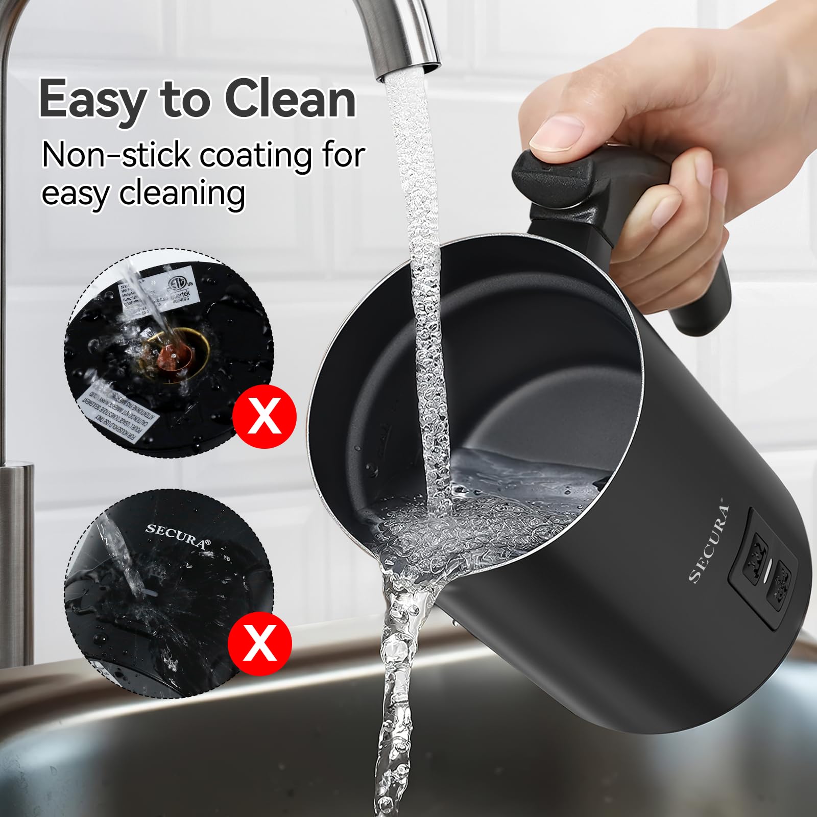 - Durable and Non-stick: High-quality food grade stainless-steel exterior with safe, non-stick coated interior jug for easy cleaning and maintenance. Angled spout and detachable base make pouring easy—perfect for creating latte art and minimizing spills