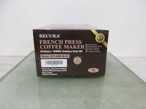 - The capacity of Secura Stainless-steel French coffee press is 34 OUNCE / 1000ML. All the parts of this French coffee maker are DISHWASHER SAFE
