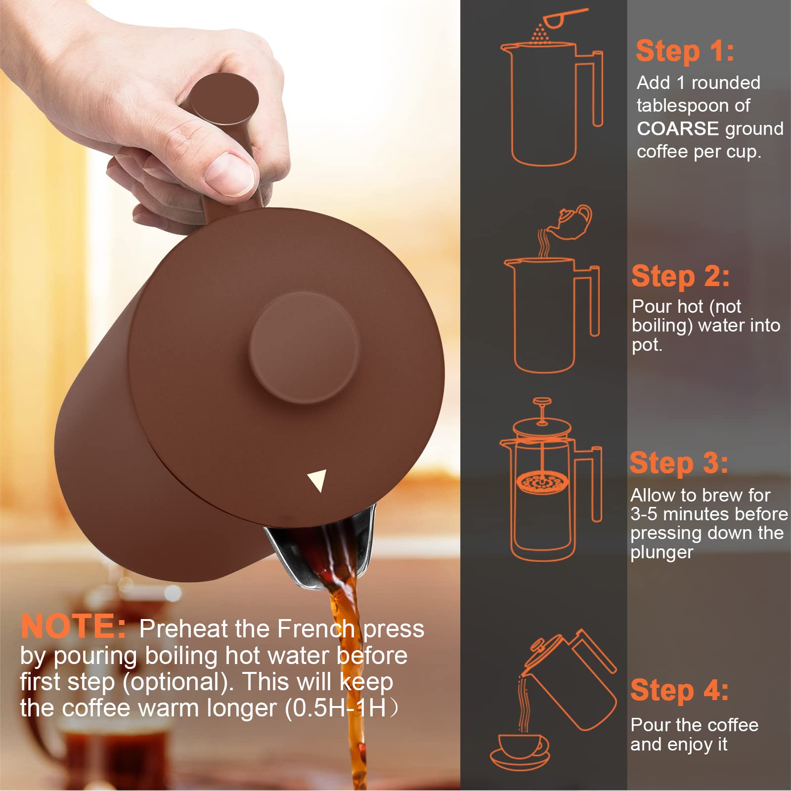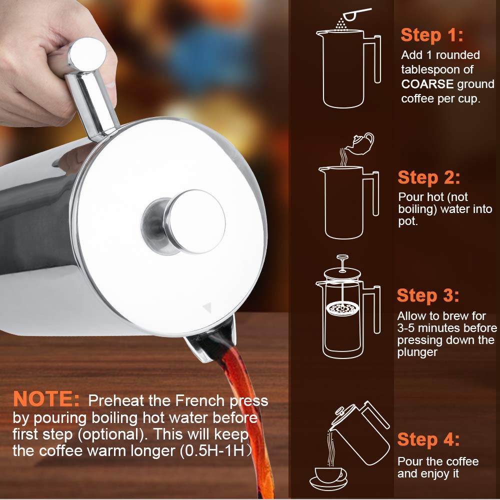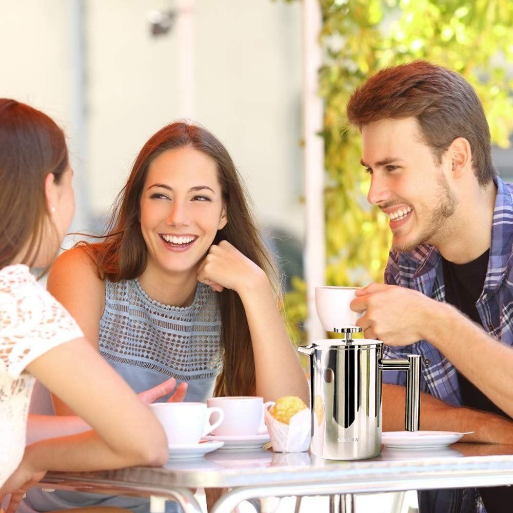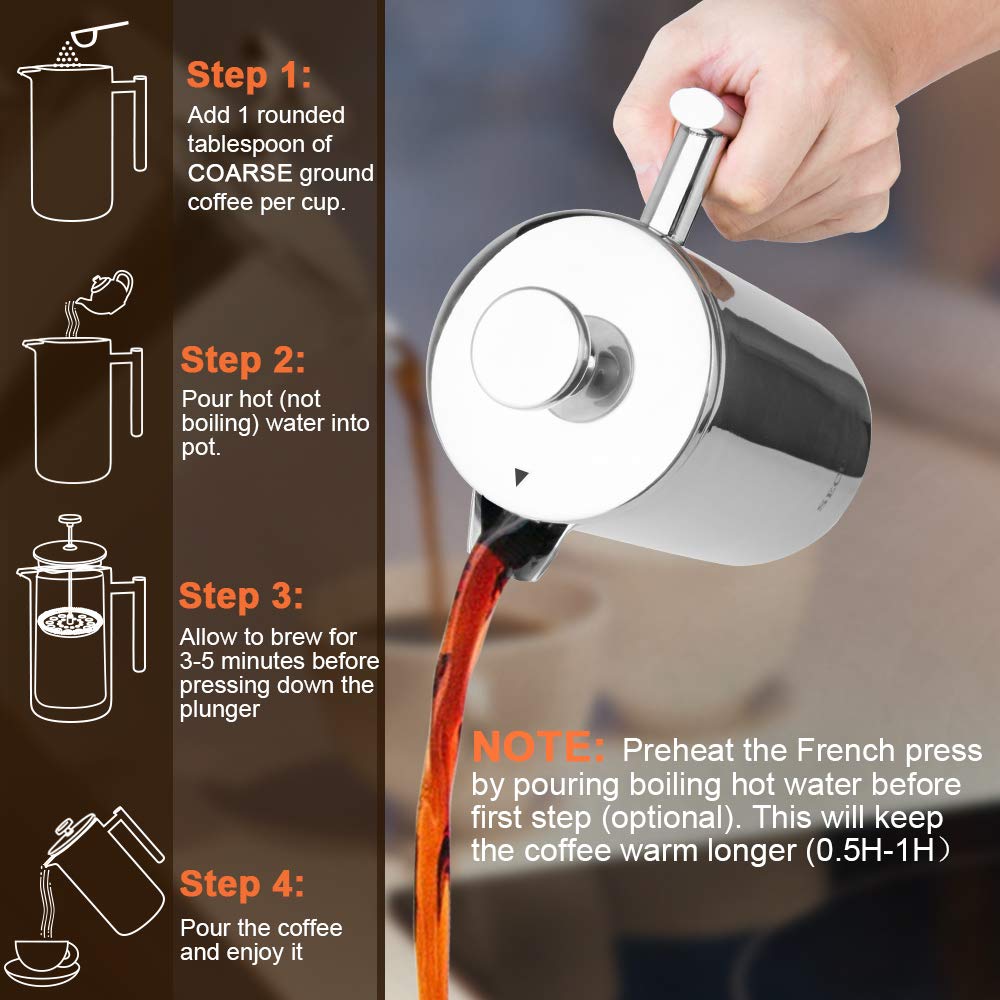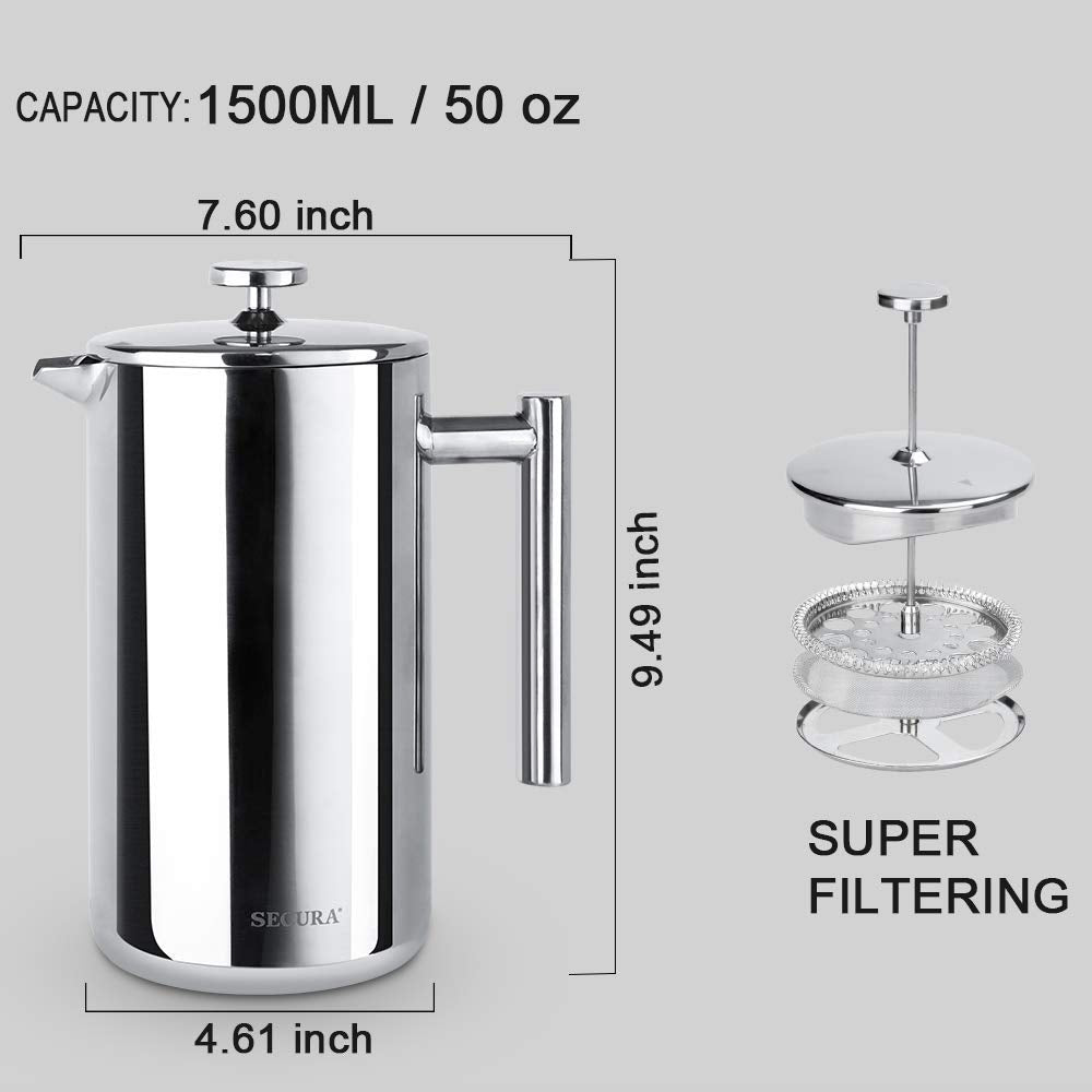 - Secura stainless steel French Press coffee maker is made from top quality 18/8, 304 stainless steel, both the interior and exterior. It is made to outlast other coffee makers