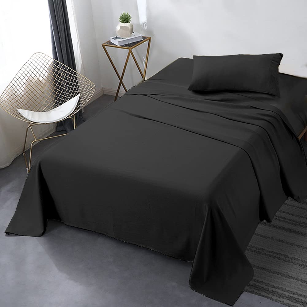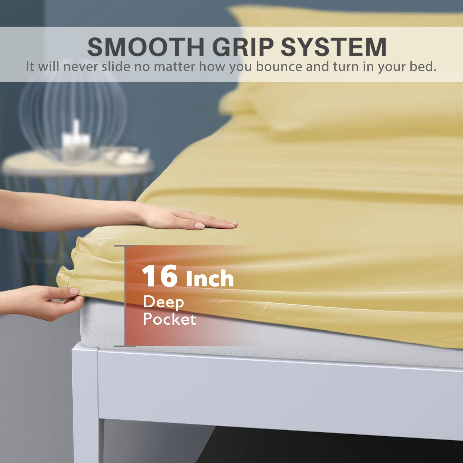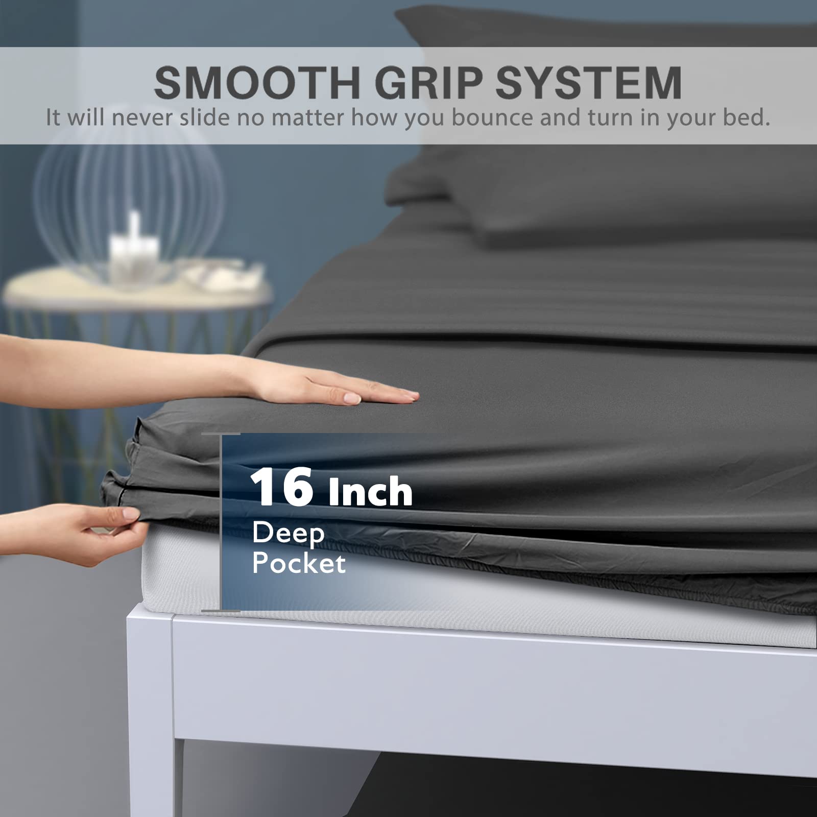 - 4PC QUEEN SHEETS SET -- 1 Flat Sheet 90"x102", 1 Fitted Sheet 60"x80"×16", 2 Pillowcases 20"x30". Deep pockets that fit mattresses up to 16" deep with elastic all around, more than other bed sheets to grip and fit