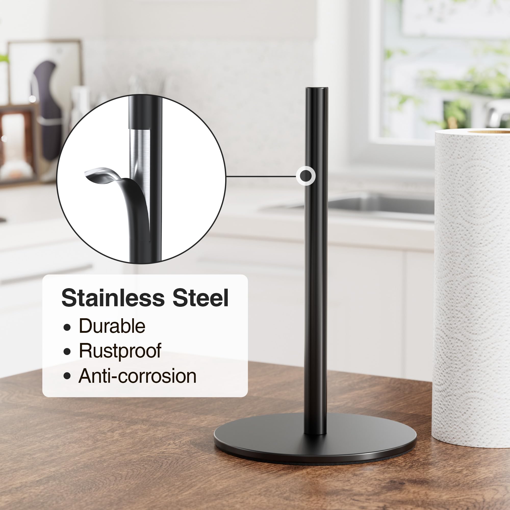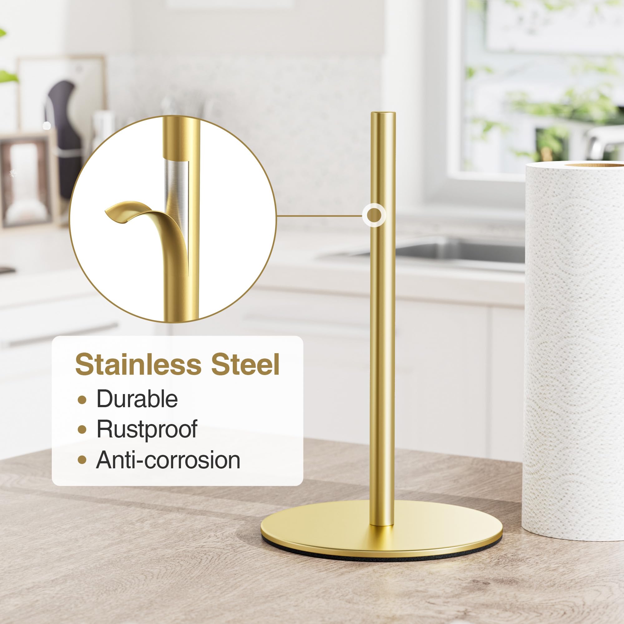 • Material: The kitchen roll holder is made of premium stainless steel, with non-slip base and brushed nickel finish, rustproof and waterproof,suit for every style kitchen environment.