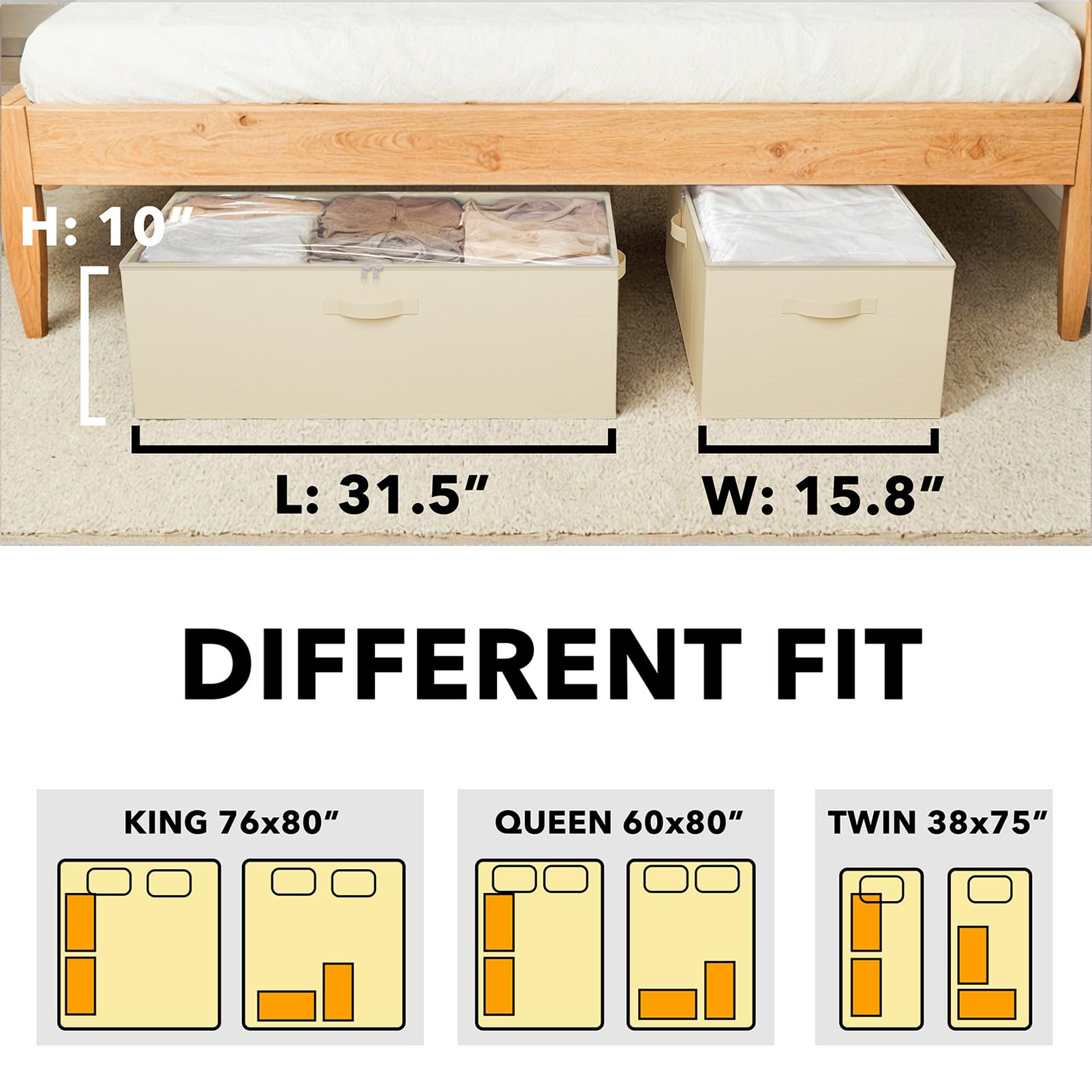 - 2 PACK UNDER BED STORAGE - Make your underbed space neat and organized with this storage bin organizer; Each Bin SIZE: 31.5"L x 15.8"W x 10"H