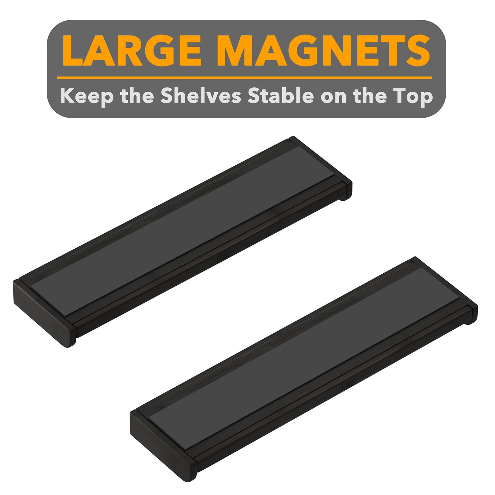 - STURDY CONSTRUCTION - Made of durable solid bamboo; Sturdy enough to hold different sizes spice jars; Live an organized and sustainable life with this bamboo stove top magnetic shelf