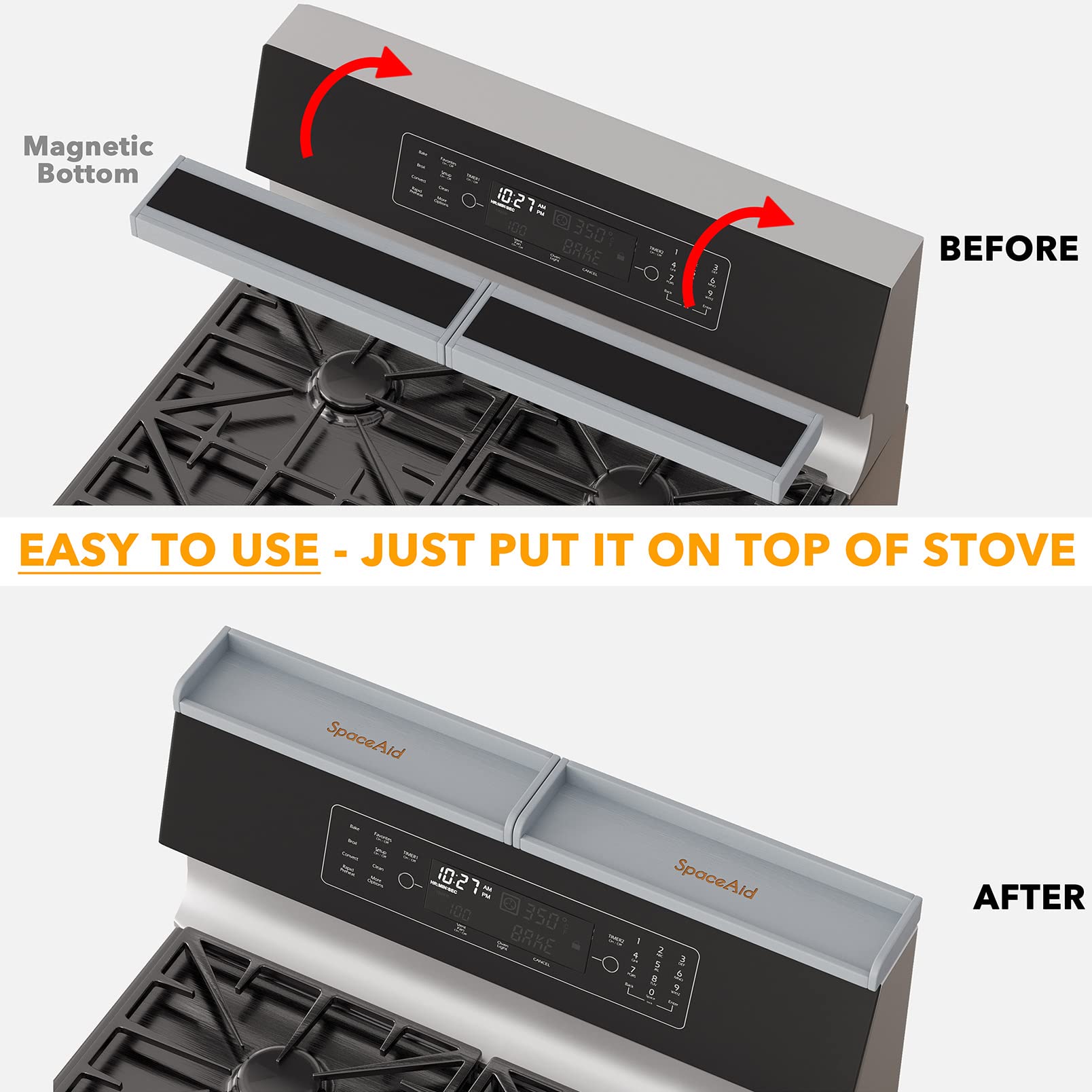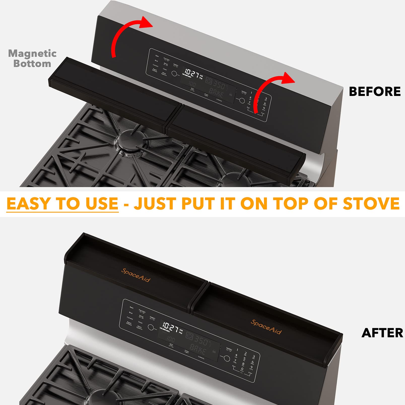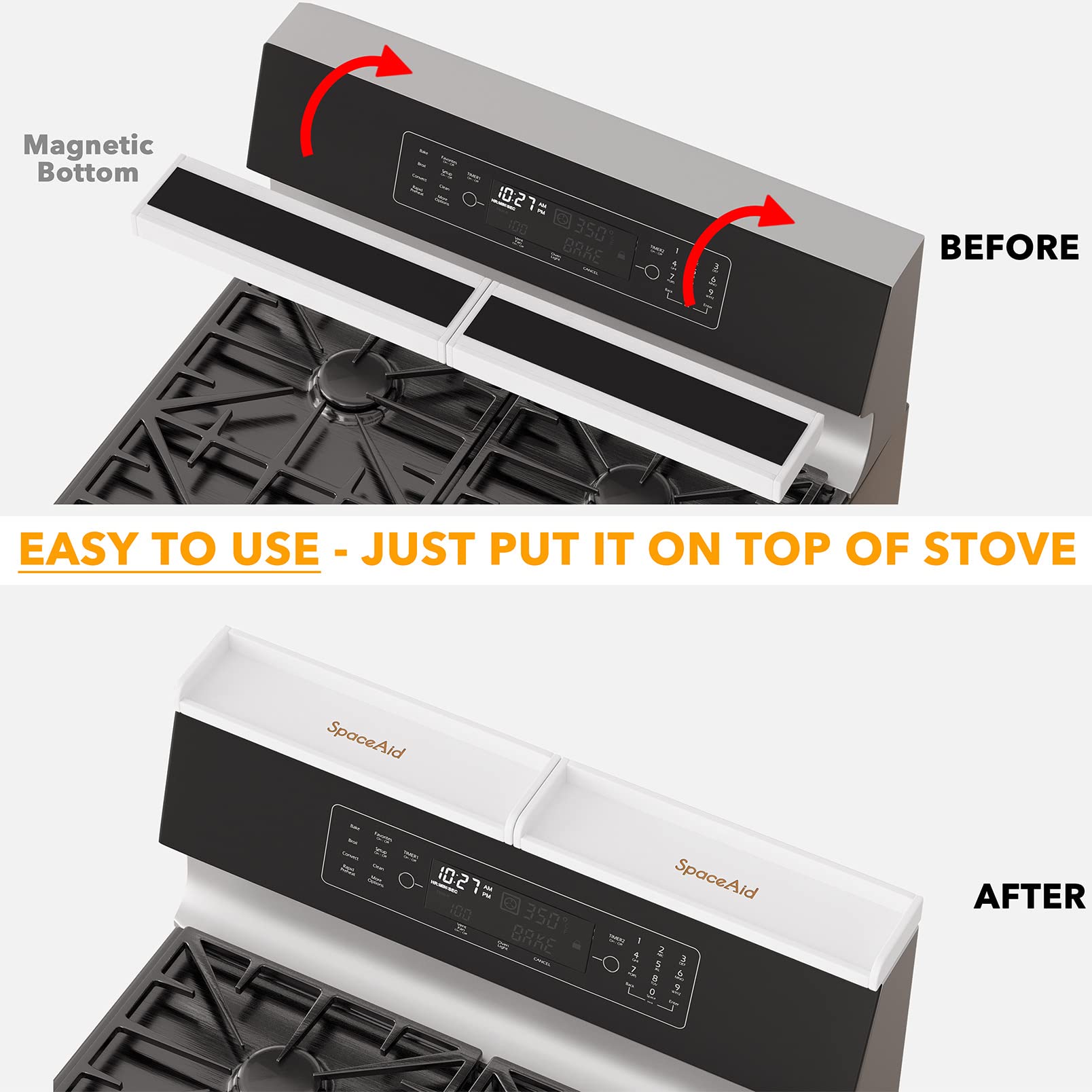 - 30" WIDE & FIT FOR FLAT TOP ONLY - The stove top organizer can only fit on FLAT TOP stove; The magnetic base cannot fit on curved top stove; Also please check your stove top's width before buying and make sure it is 30" WIDE so this holder can fit