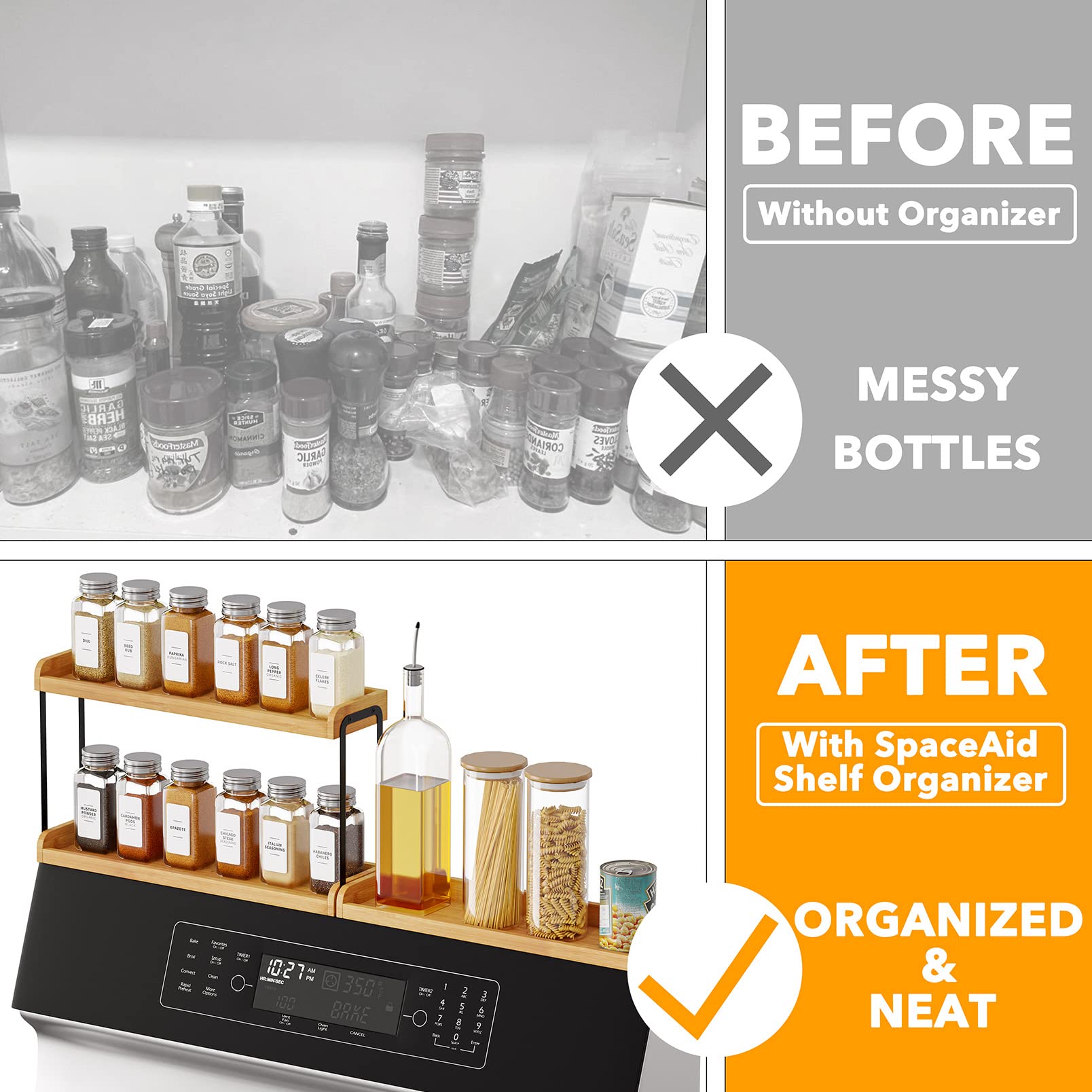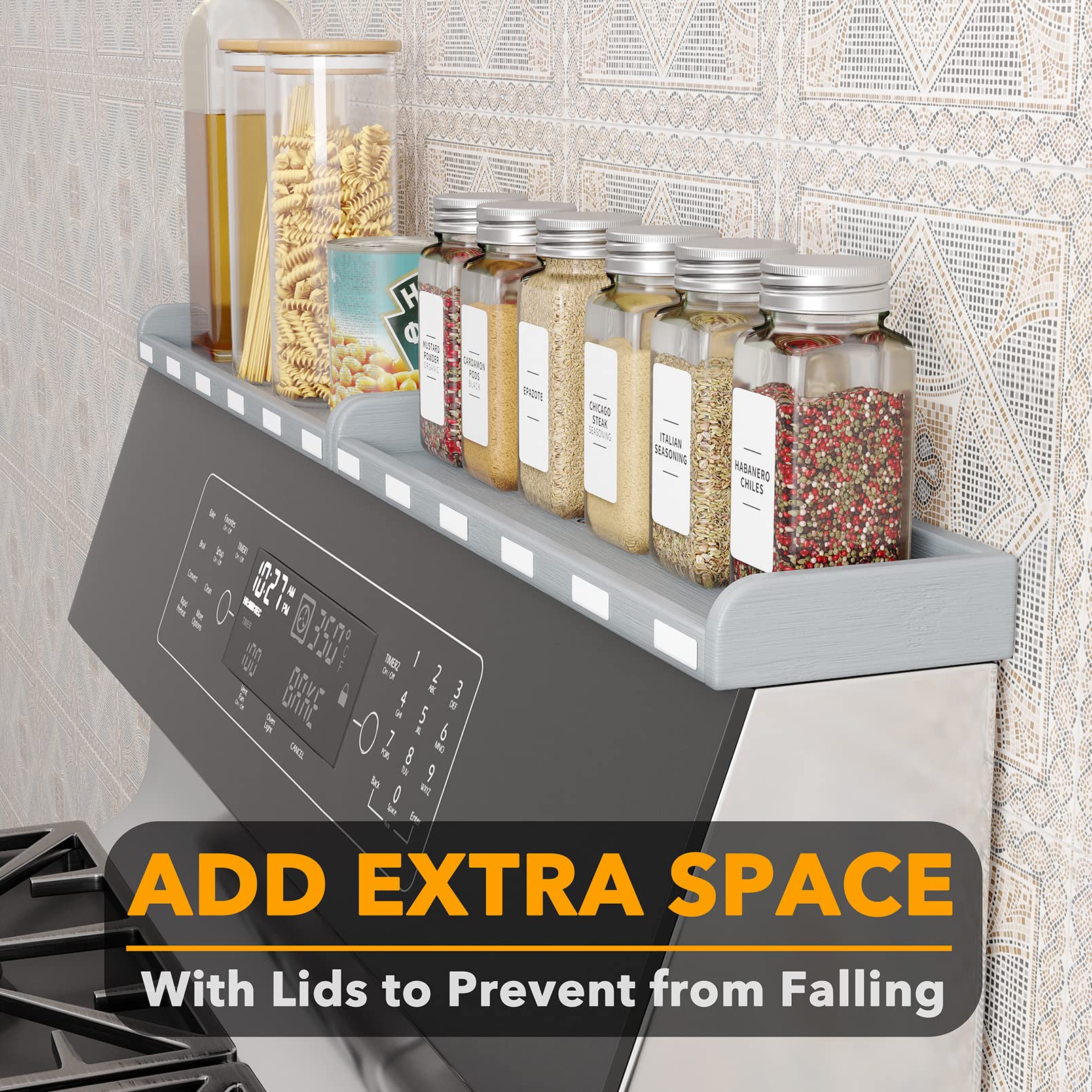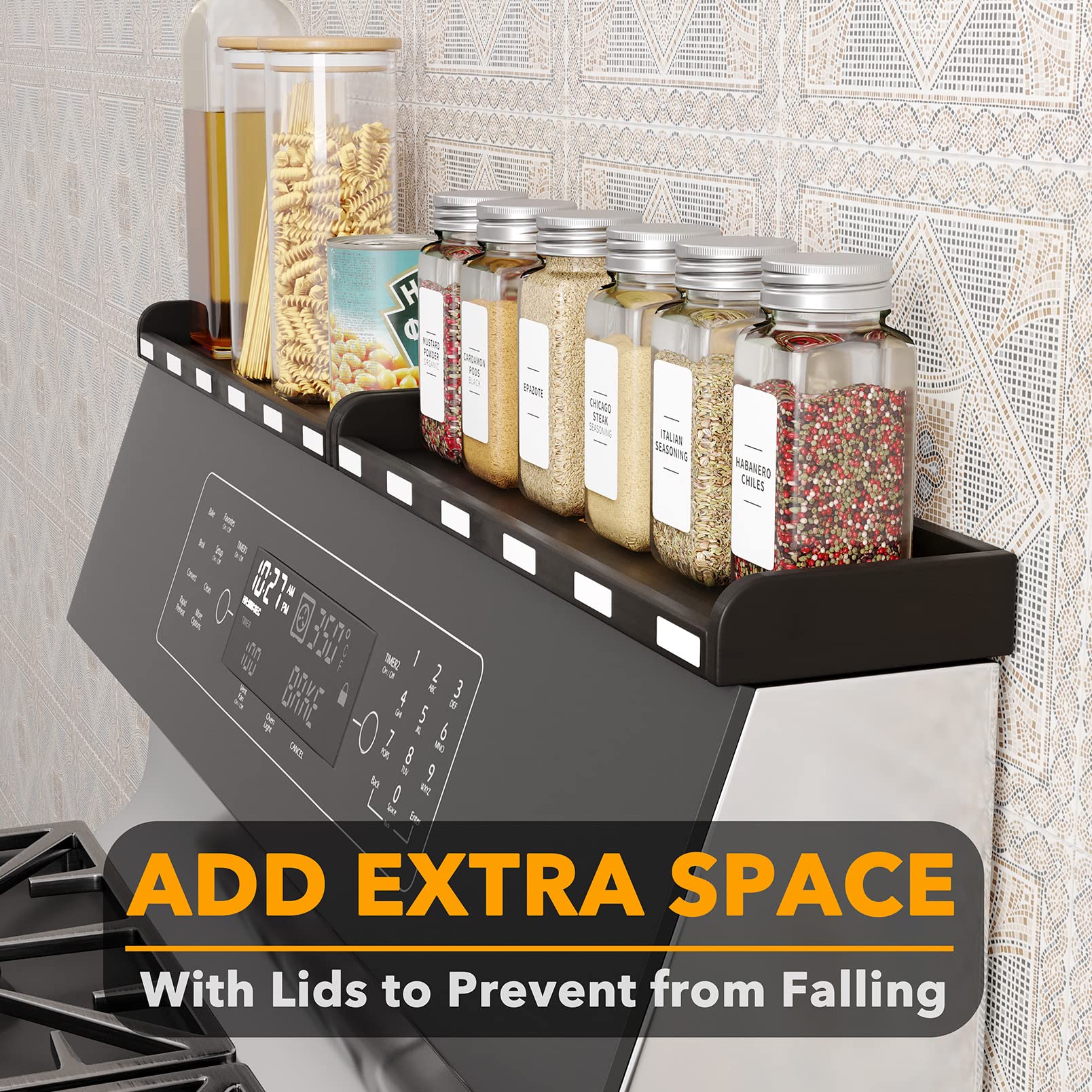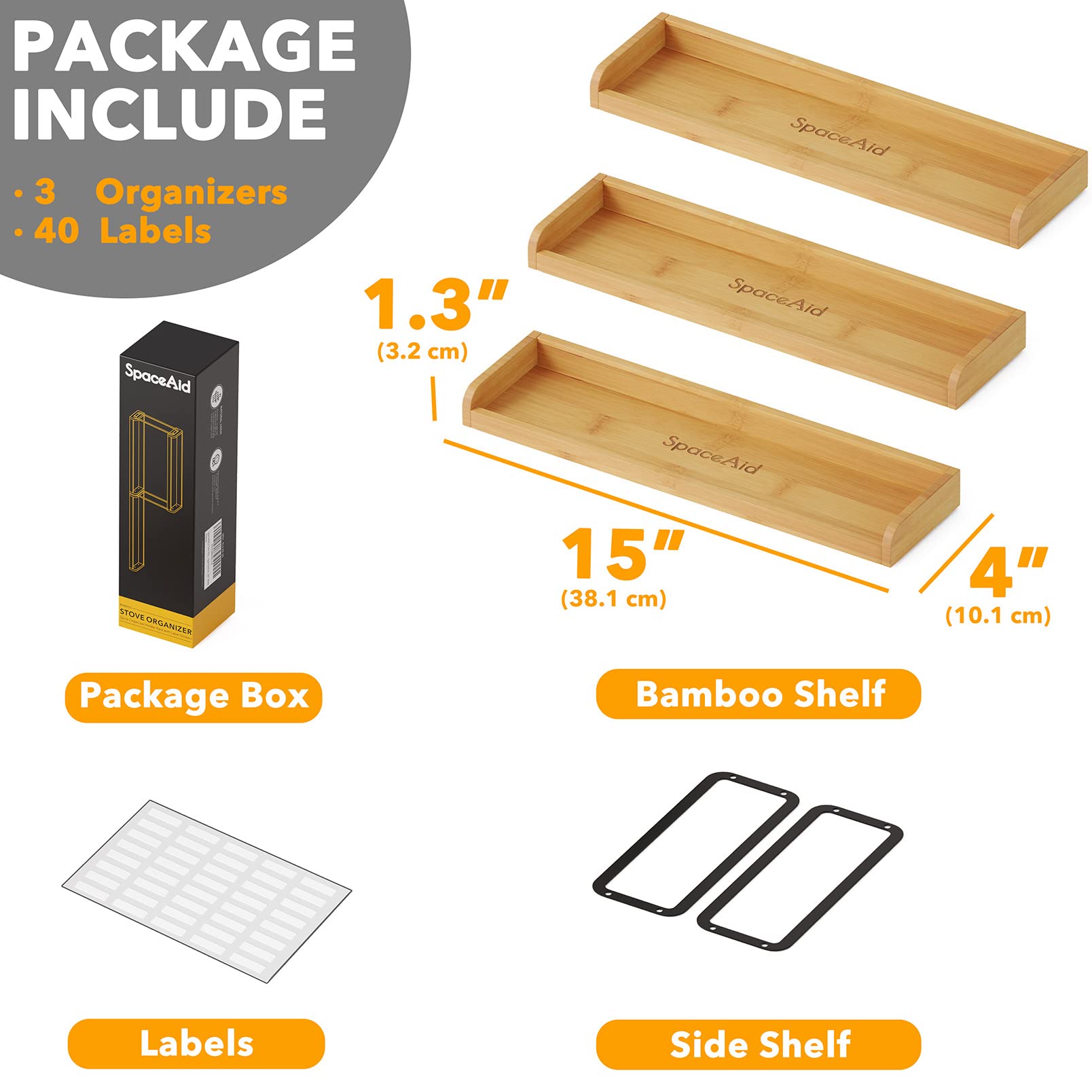 - BLANK LABELS INCLUDED - Identify spices over stove instantly with the labels on the shelf front; You can write and label the bamboo shelf clearly, or not use the labels to keep the clean look of the stove top organizer