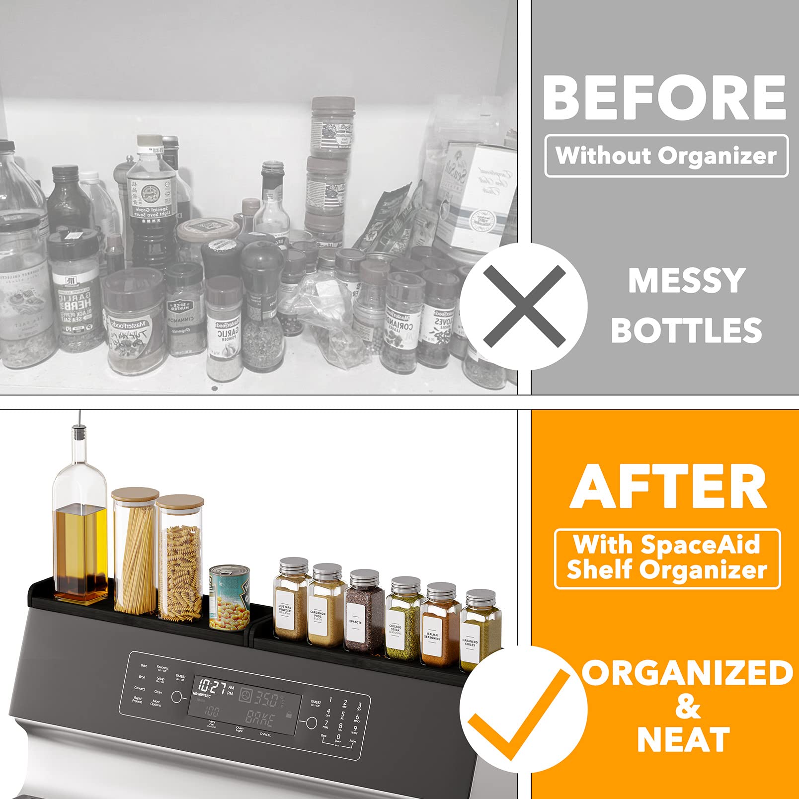 - FALLING PREVENTION DESIGN - The kitchen shelf organizer features front, back and side lips to prevent the spice jars from falling; Keep your home clean and keep track of your spice jars better with this bamboo organizer storage holder