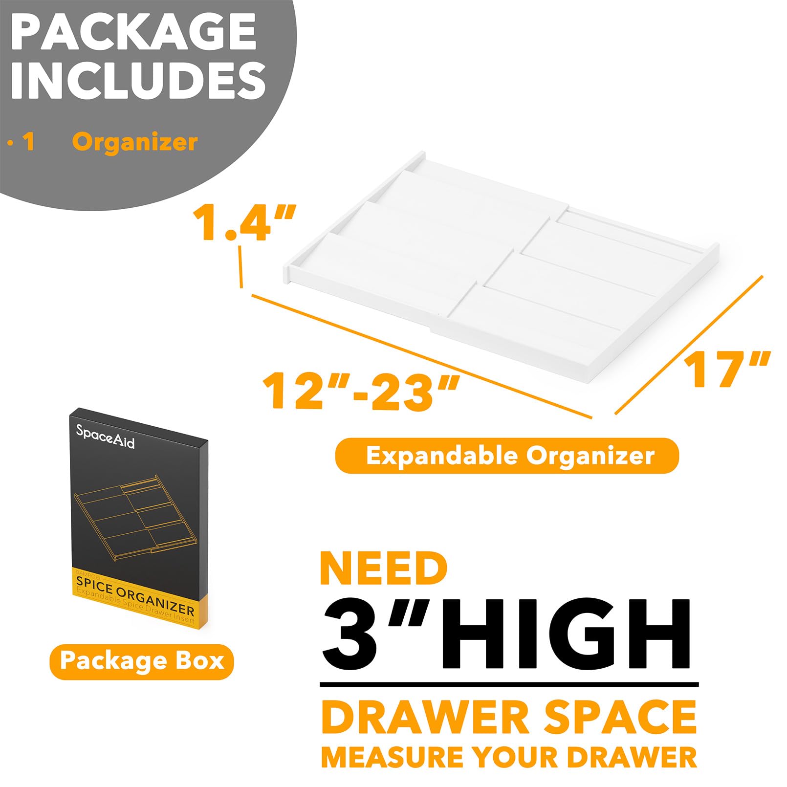 • IMPORTANT NOTICE - This spice drawer organizer needs at least 3 inches deep drawer space to fit in when you add jars on; PLEASE MAKE SURE YOUR DRAWER IS AT LEAST 3" DEEP
