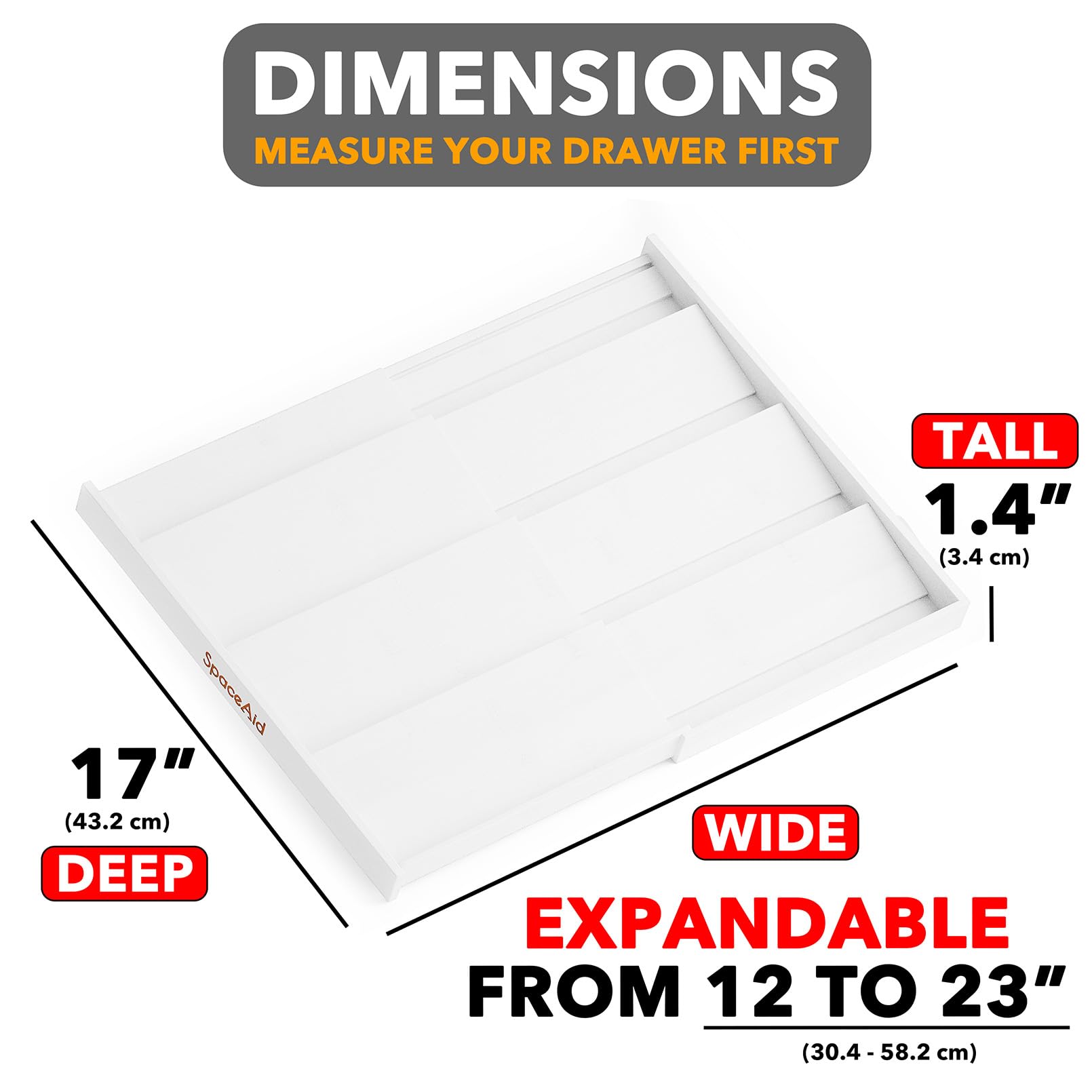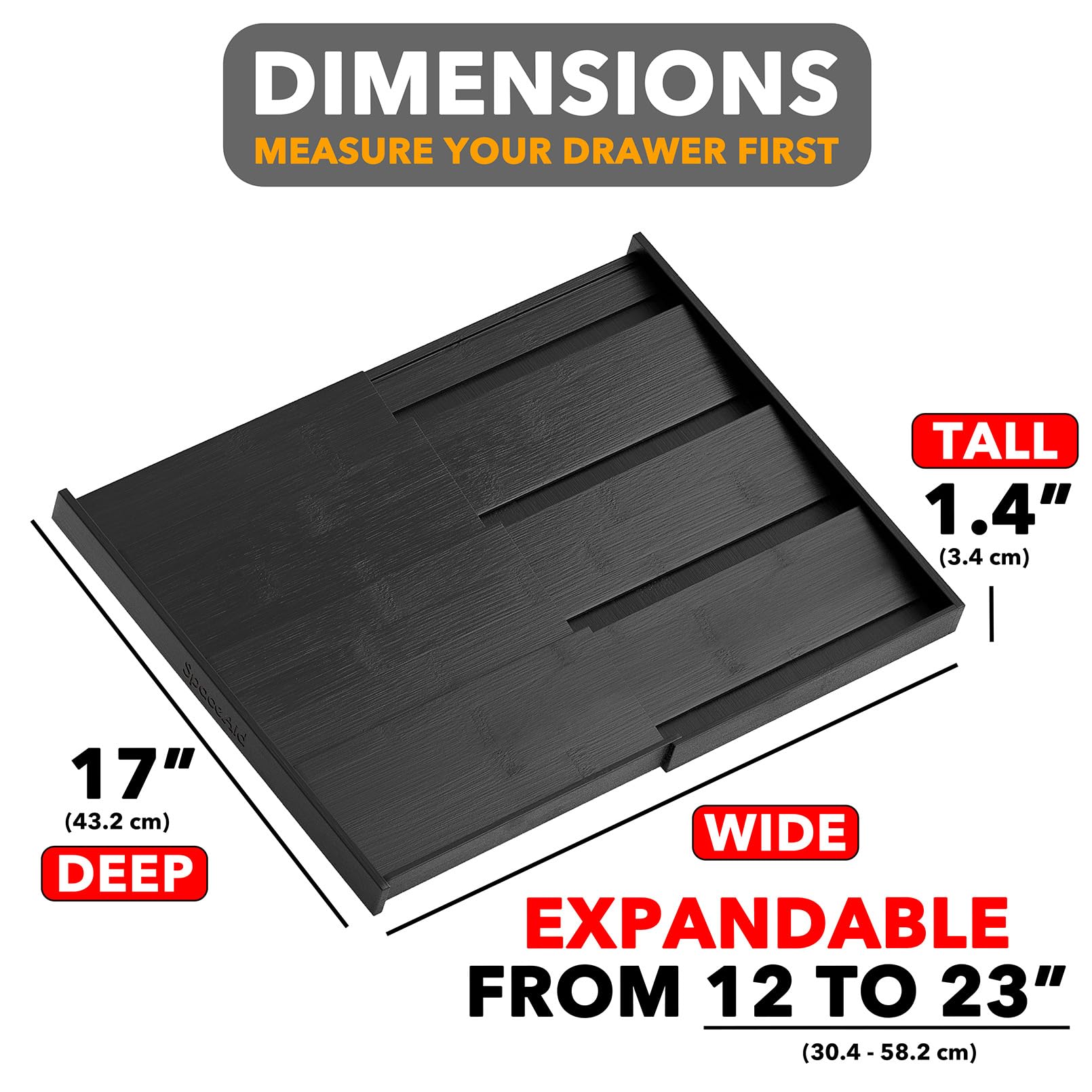• BEAUTIFUL AND ORGANIZED - Make your kitchen drawer neat and organized with adjustable bamboo spice drawer organizer; SIZE: 17"L x (12-23")W x 1.4"H