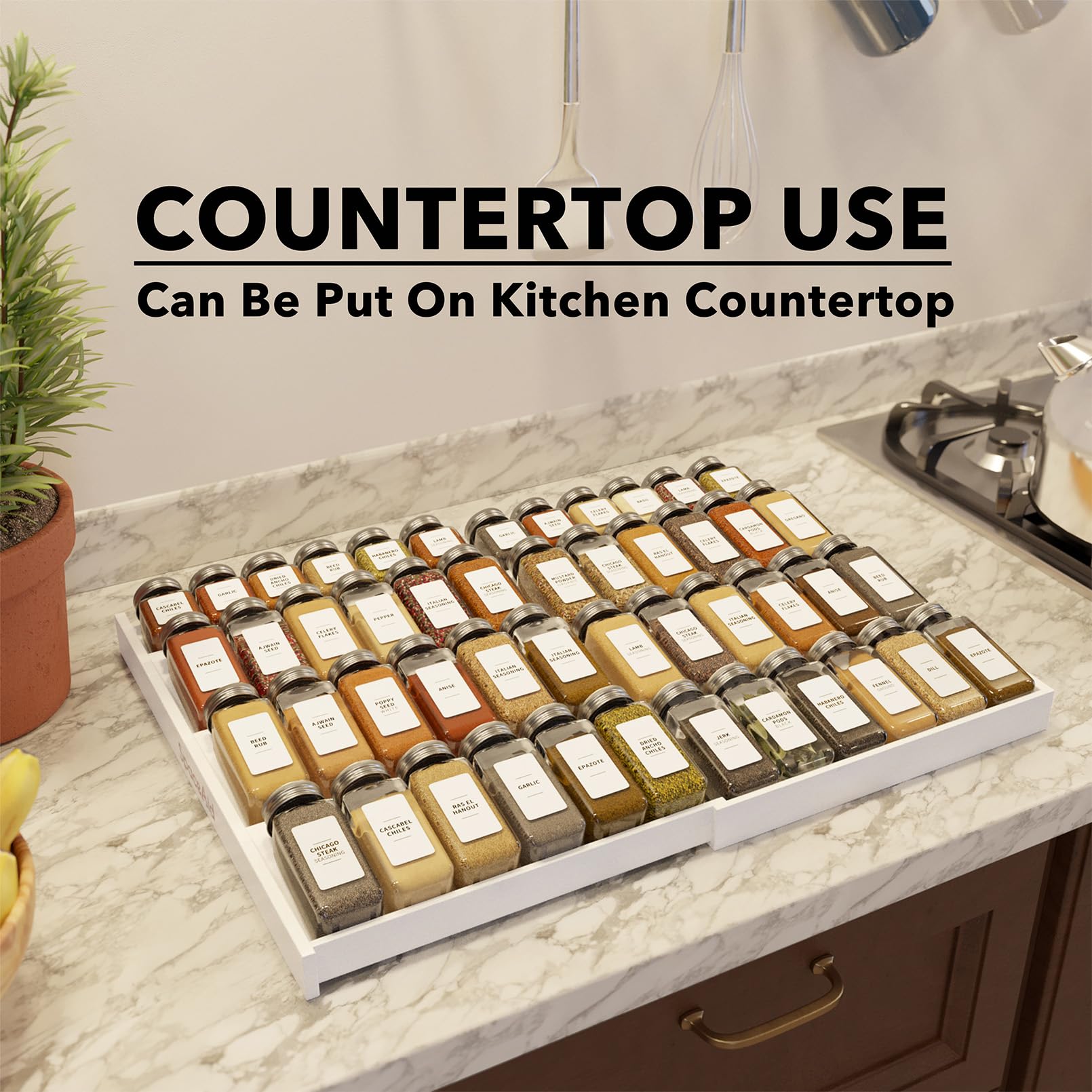 • STURDY CONSTRUCTION - The drawer spice rack is made of durable solid bamboo; Live an organized and sustainable life with this bamboo seasoning drawer organizer