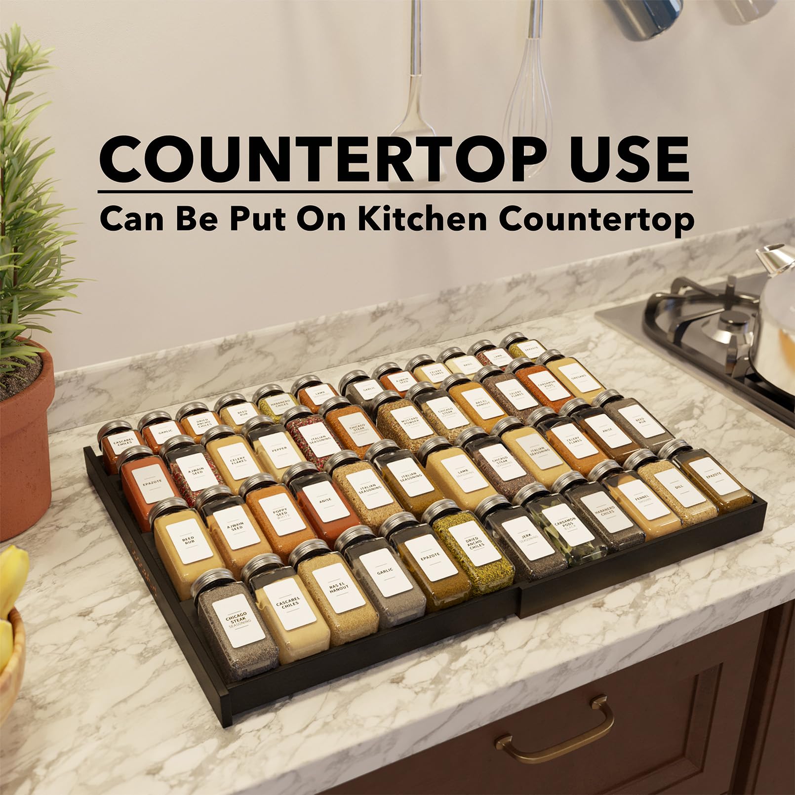 • EXPANDABLE DRAWER INSERT - The wooden spice rack is expandable from 12" to 23" wide, to fit in different sizes drawers