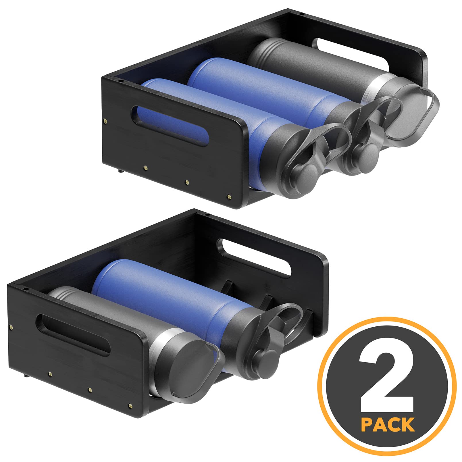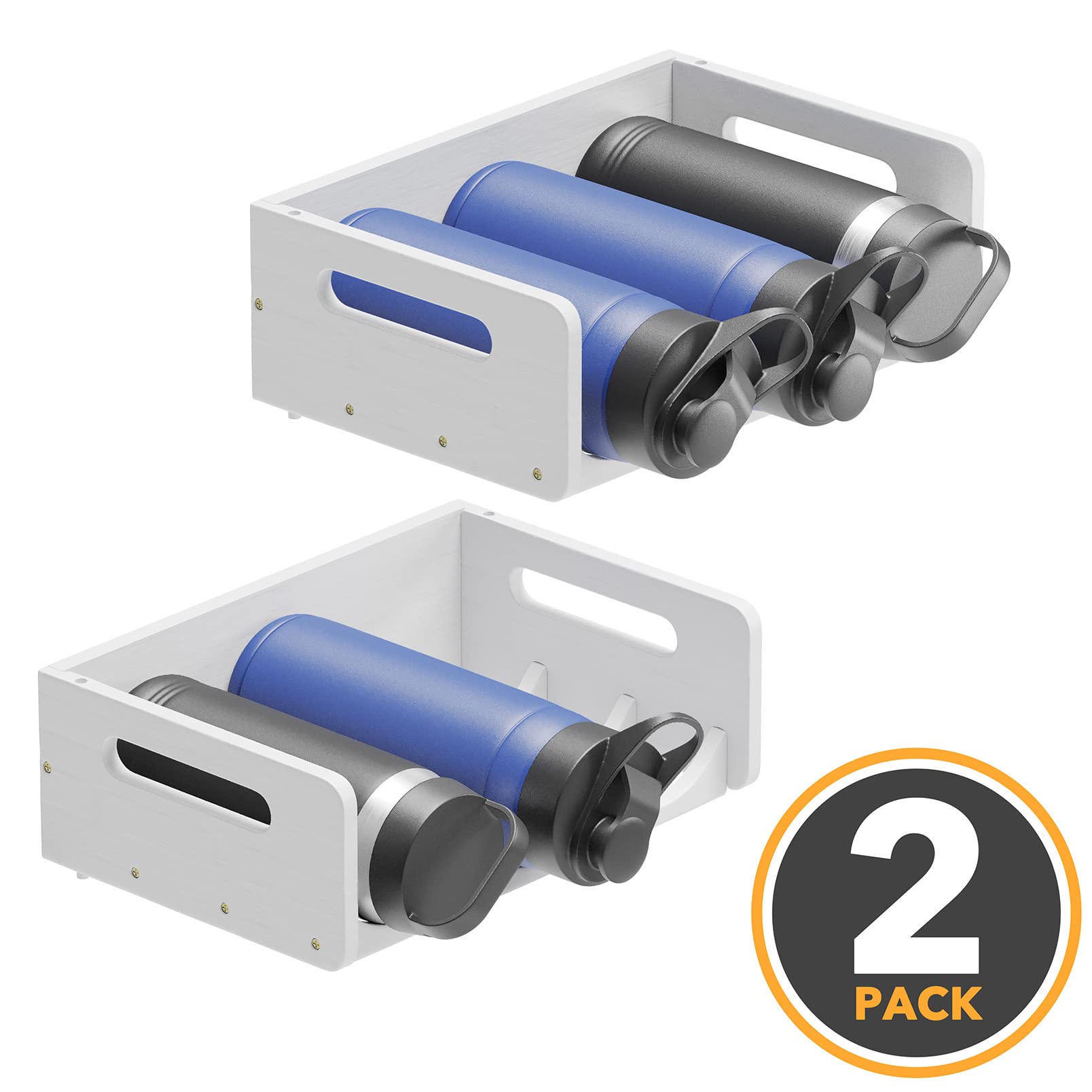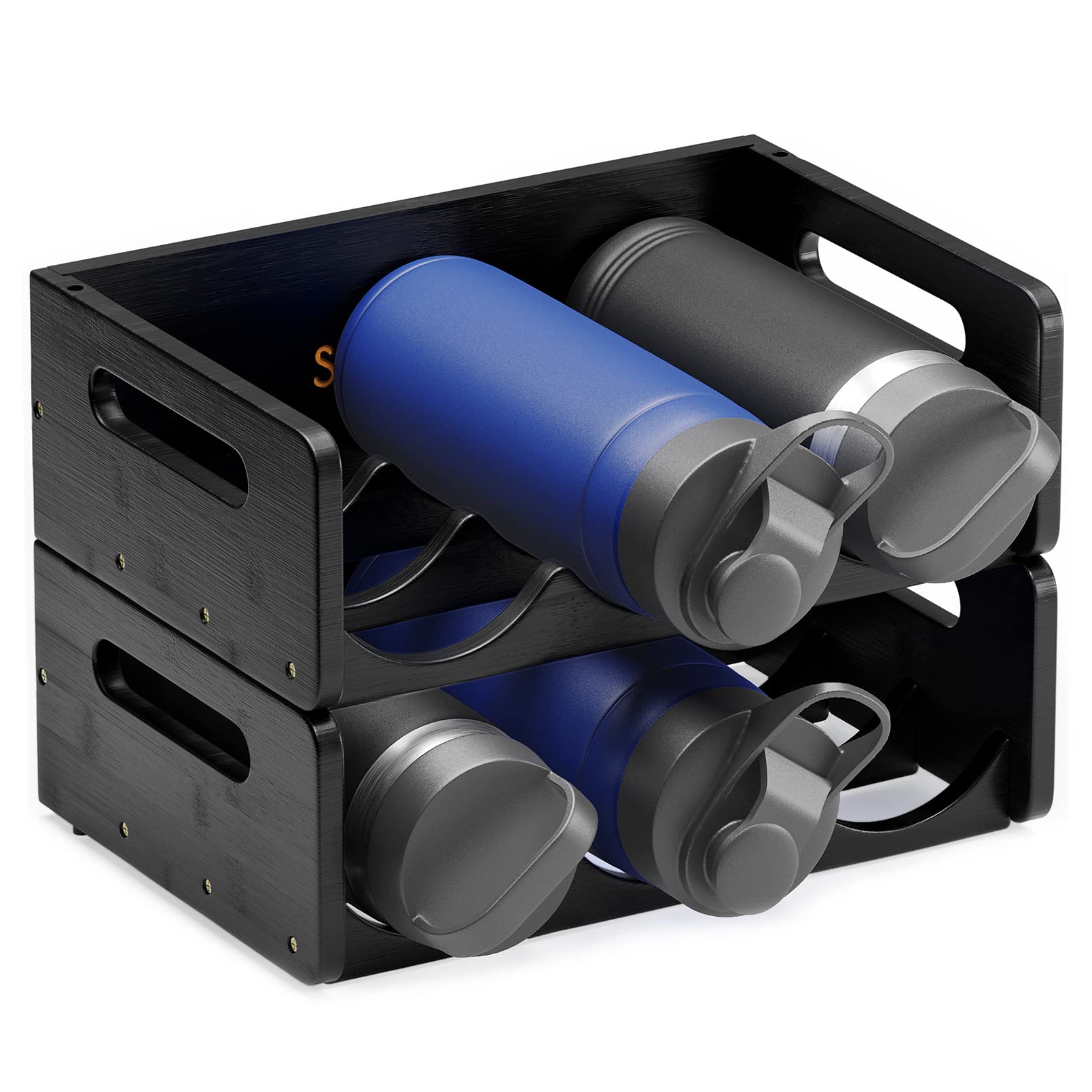 - IDEAL BOTTLES STORAGE - Keep your home clean and keep track of your water bottles better with this bamboo organizer holder; Instead of awkwardly squeezing those water bottles into empty cabinet spaces