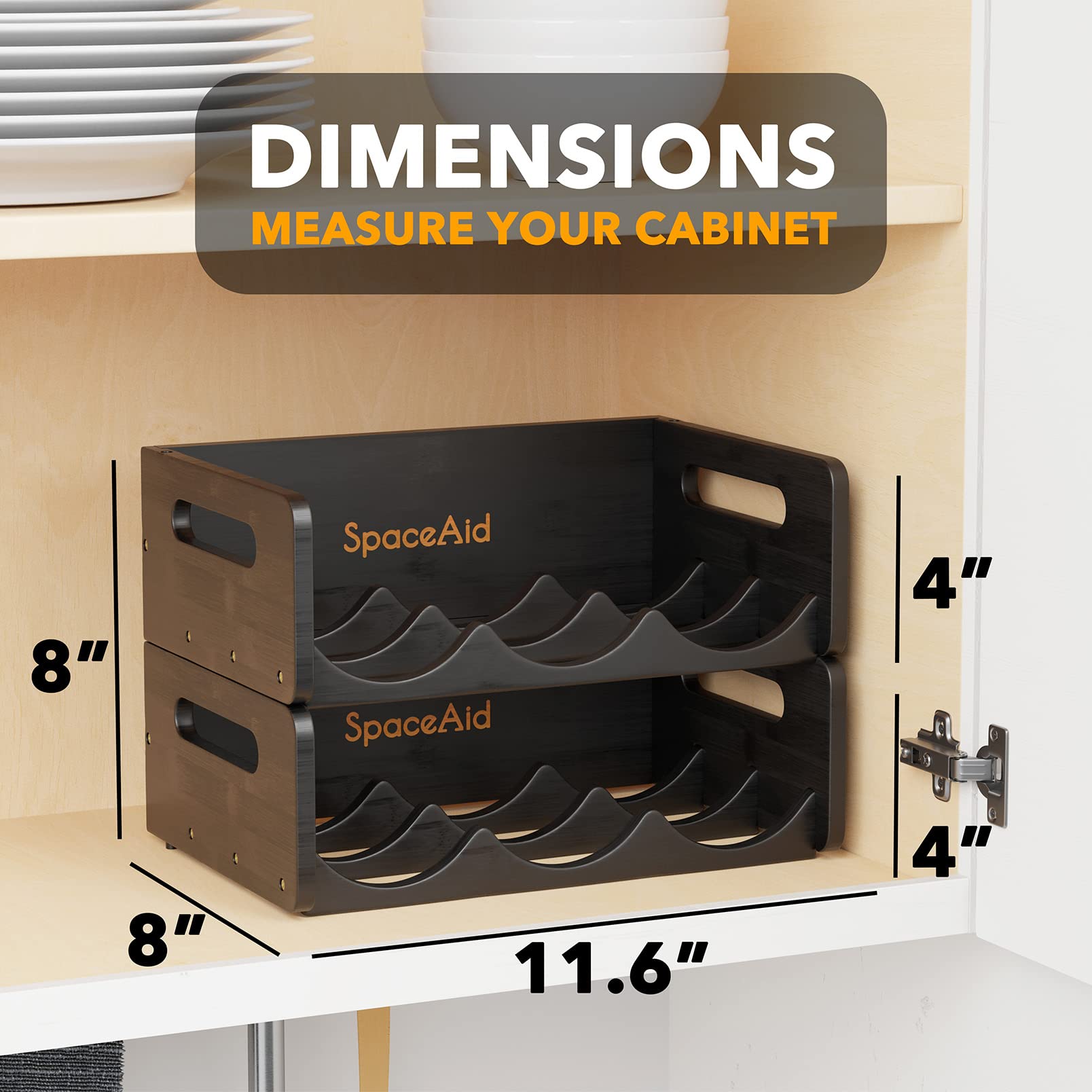 - ORGANIZED AND BEAUTIFUL - Make your kitchen cabinet neat and organized with bamboo water bottle organizer. The holder rack is designed for your different bottles organization; Each bin SIZE: 11.6"W x 8"D x 4"H
