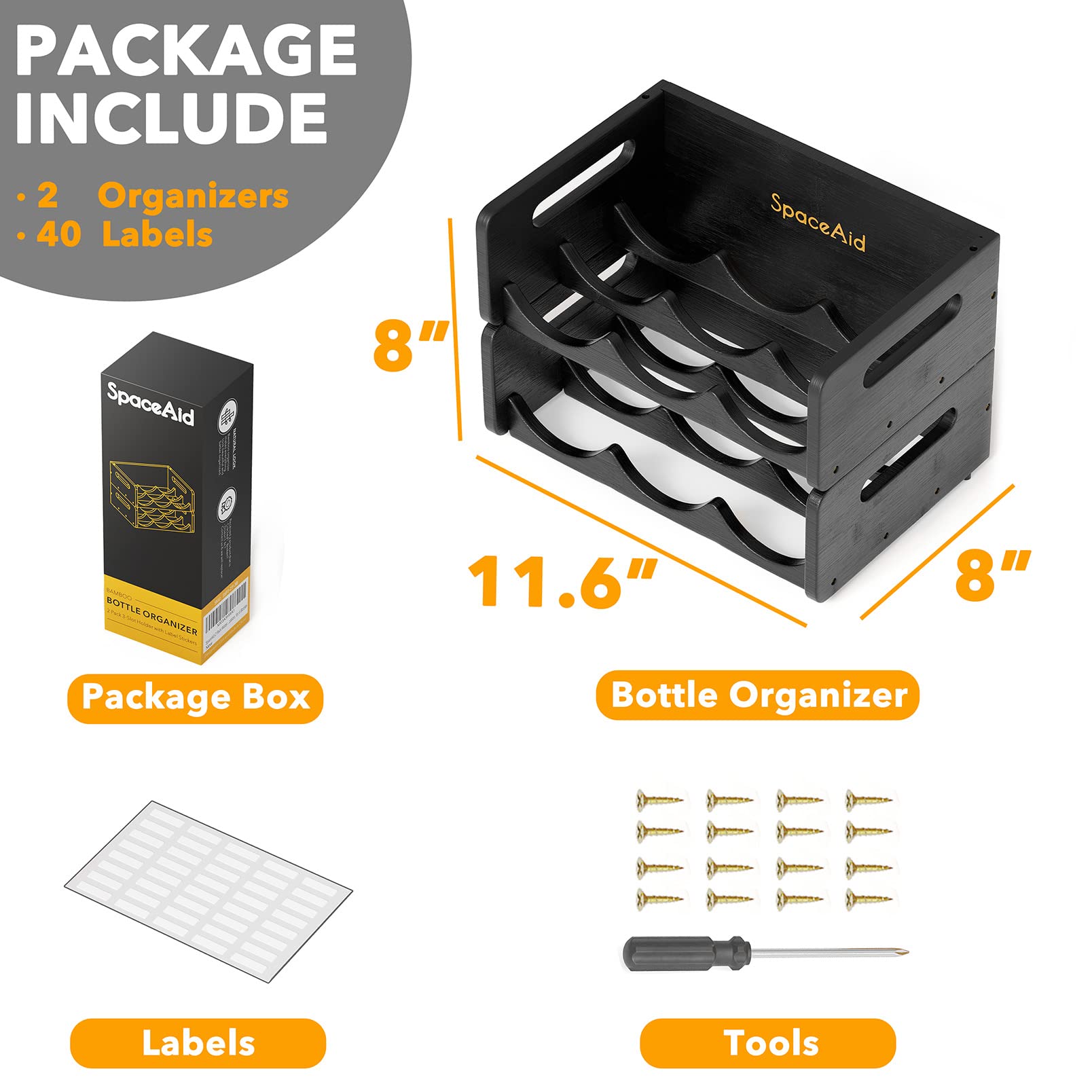 - BLANK LABELS INCLUDED - Identify bottles instantly with the labels on the shelf front; You can write and label the bamboo holder clearly, or not use the labels to keep the clean look of the water bottle organizer