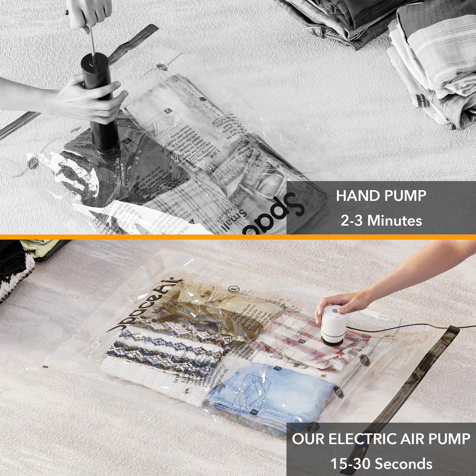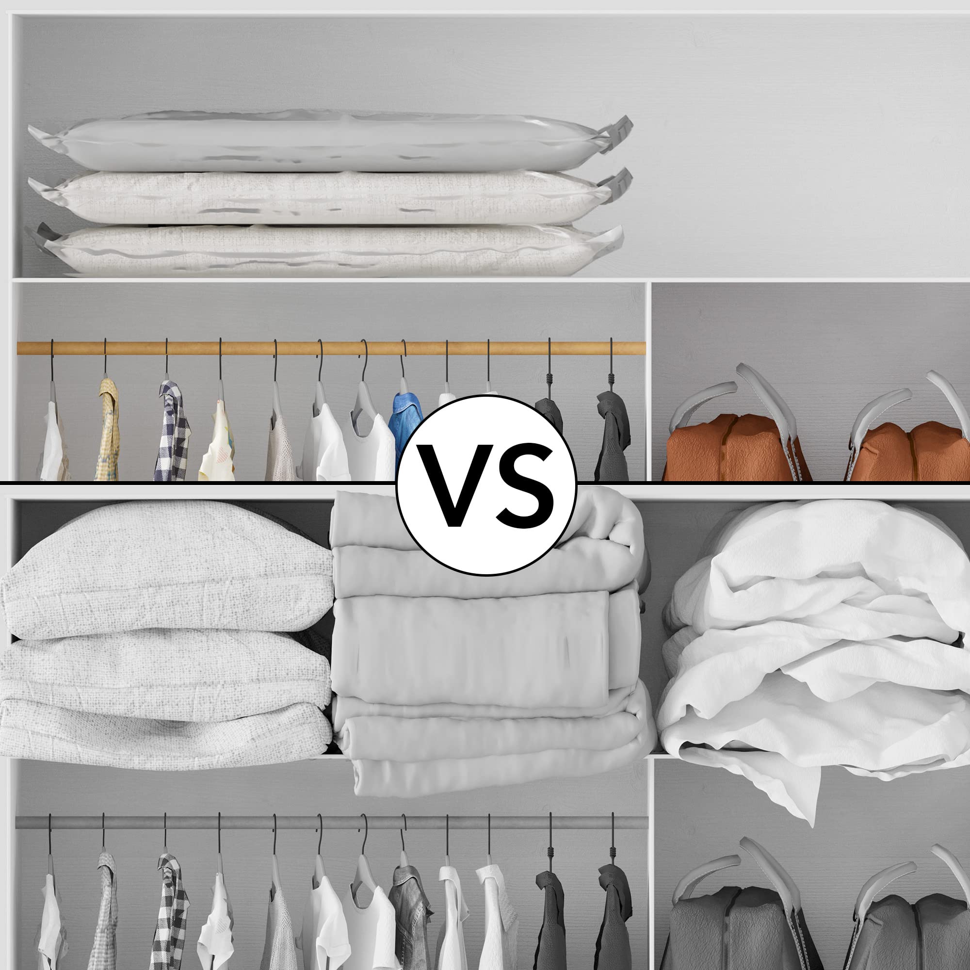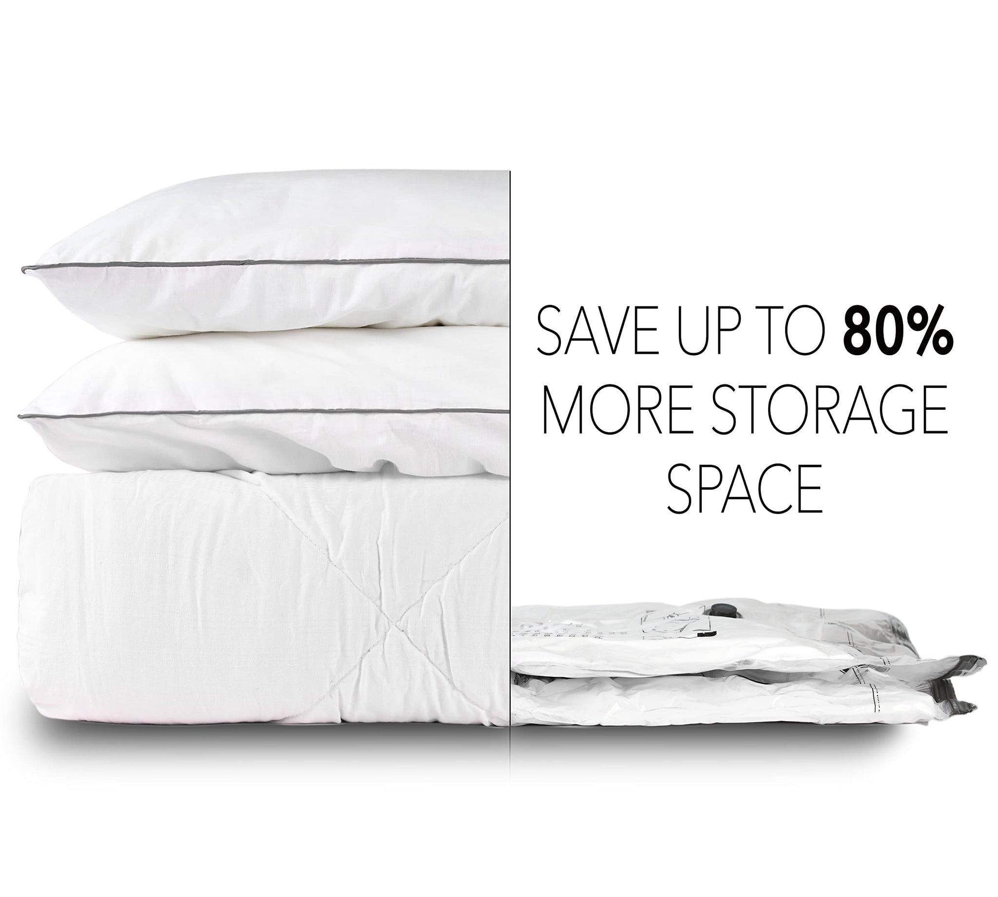 - Create Space: Squeeze and compress the air out of your bulky or seasonal belongings to compact and modular storage in wardrobe, closet, suitcase, or underbed