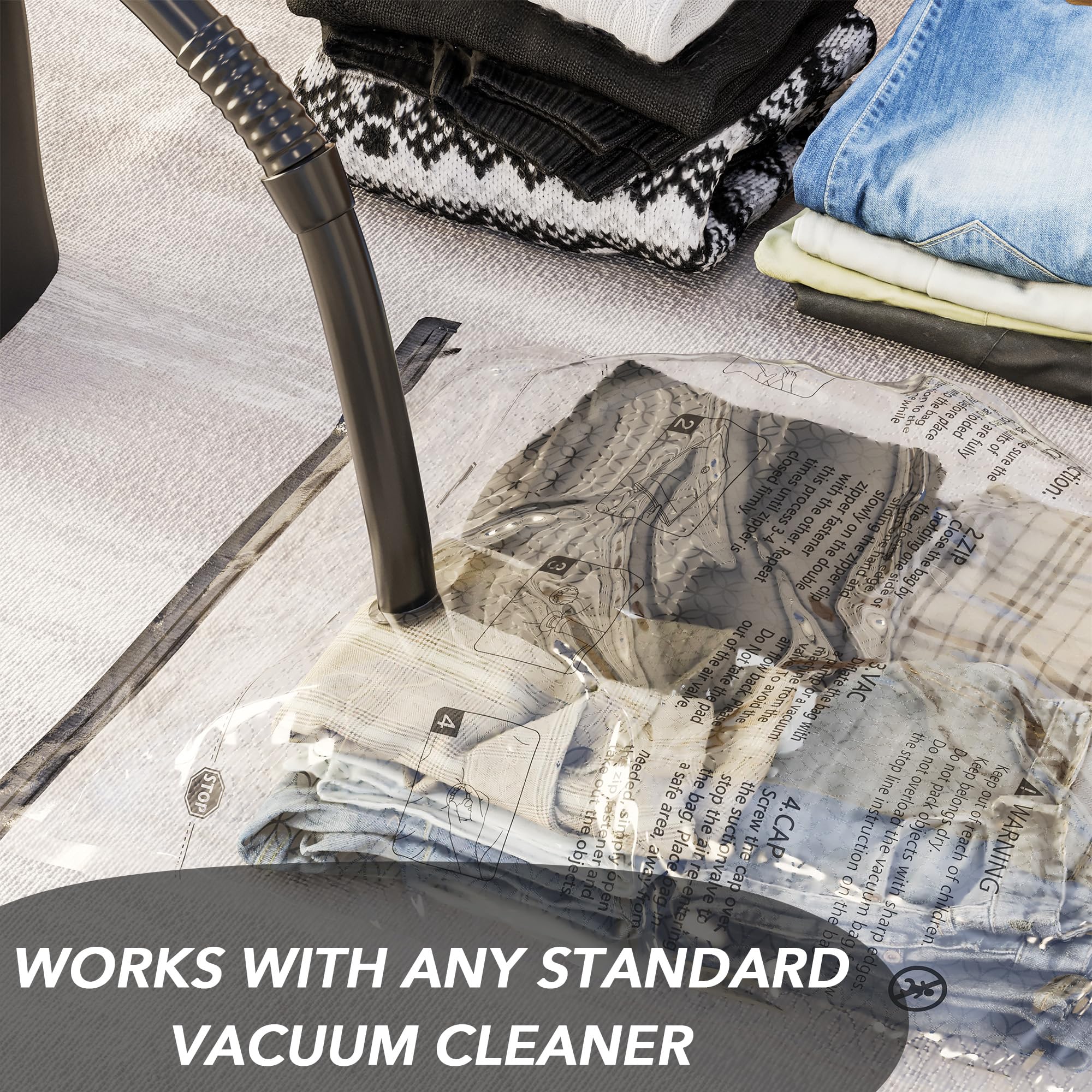 - Easy to Use: Put the items in, zip it up and suck out the air, then close the lid and finish; Works with any standard vacuum cleaner